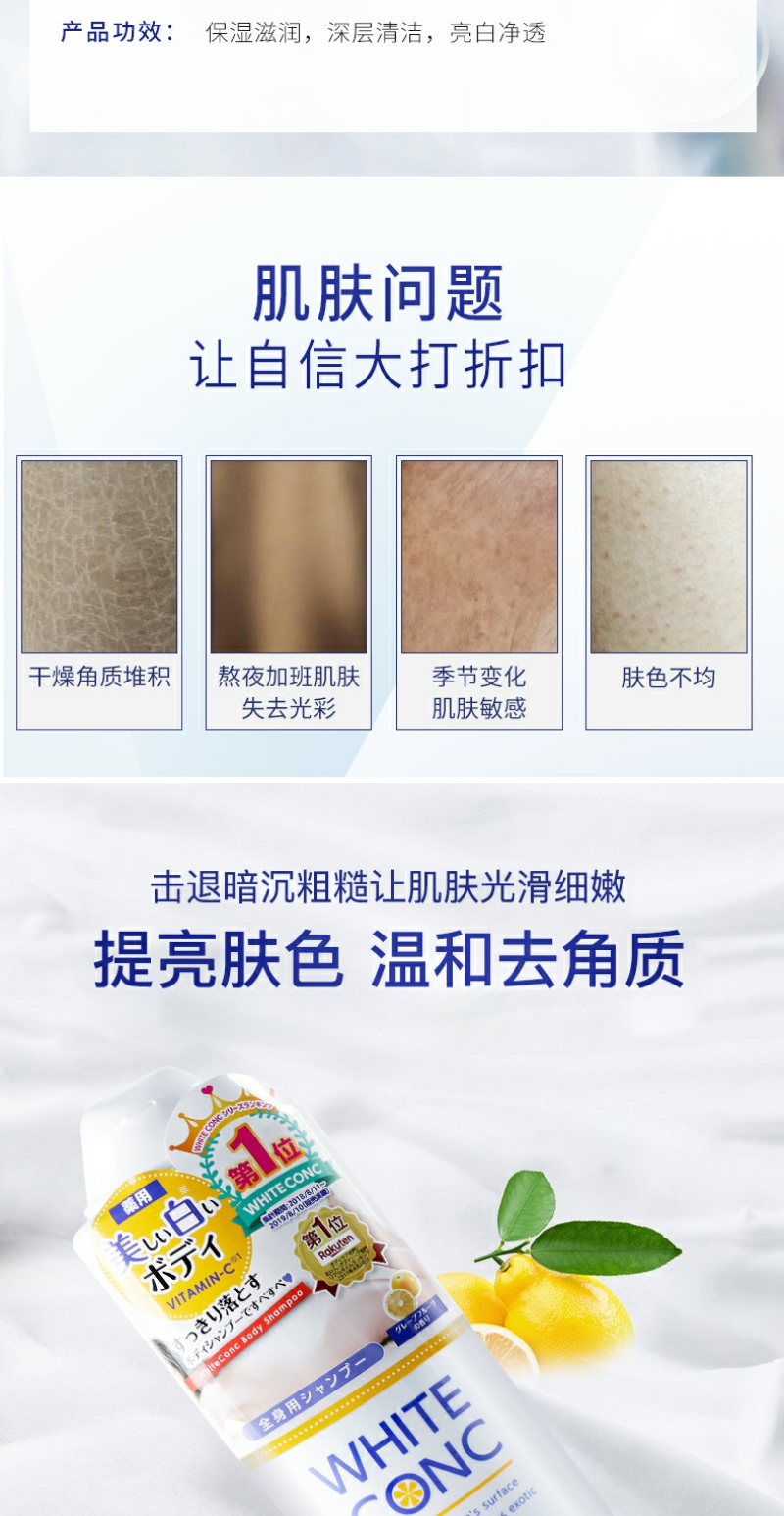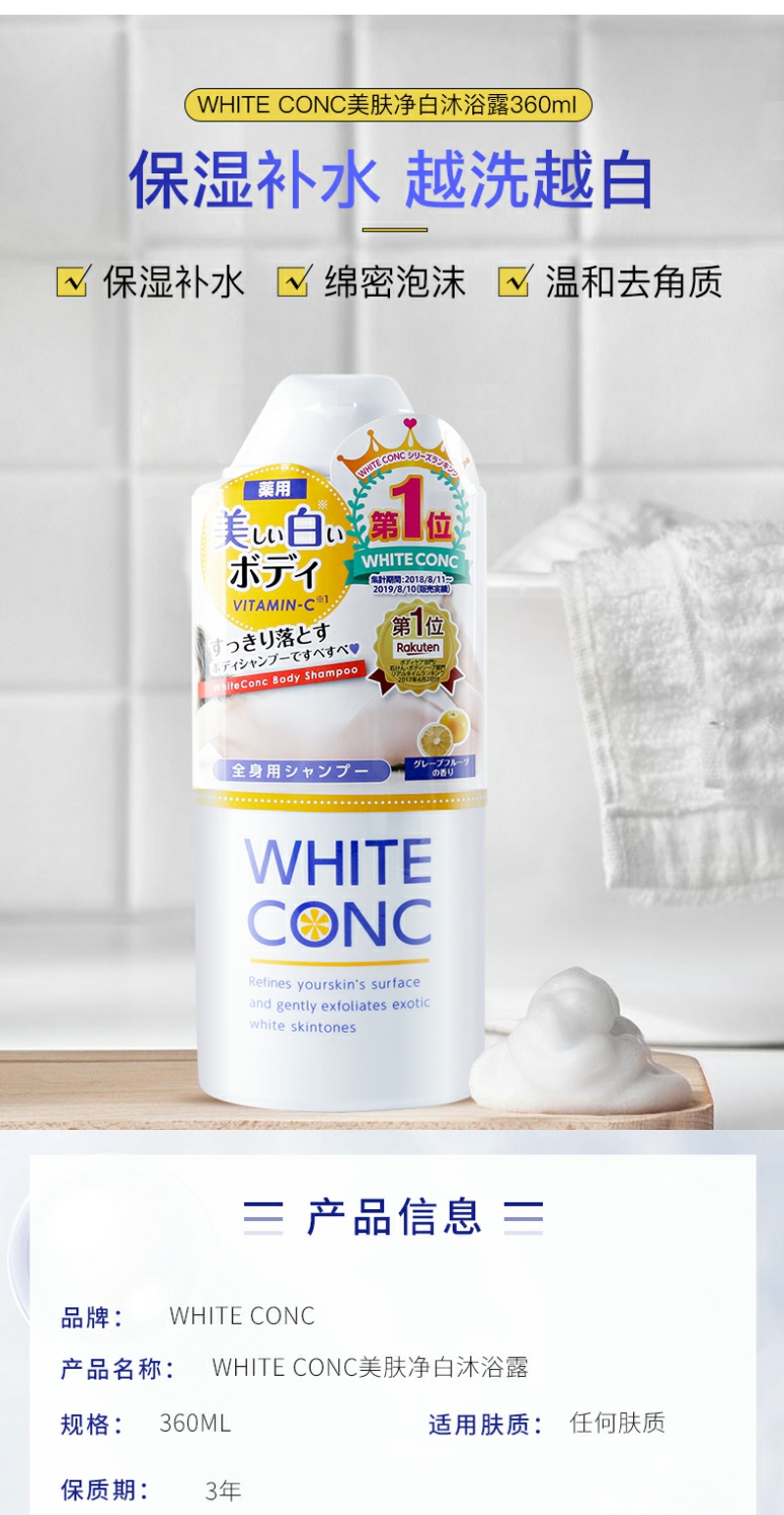 【YZ】日本White Conc沐浴露Vc深层清洁不假滑全身焕白女沐浴乳360ml