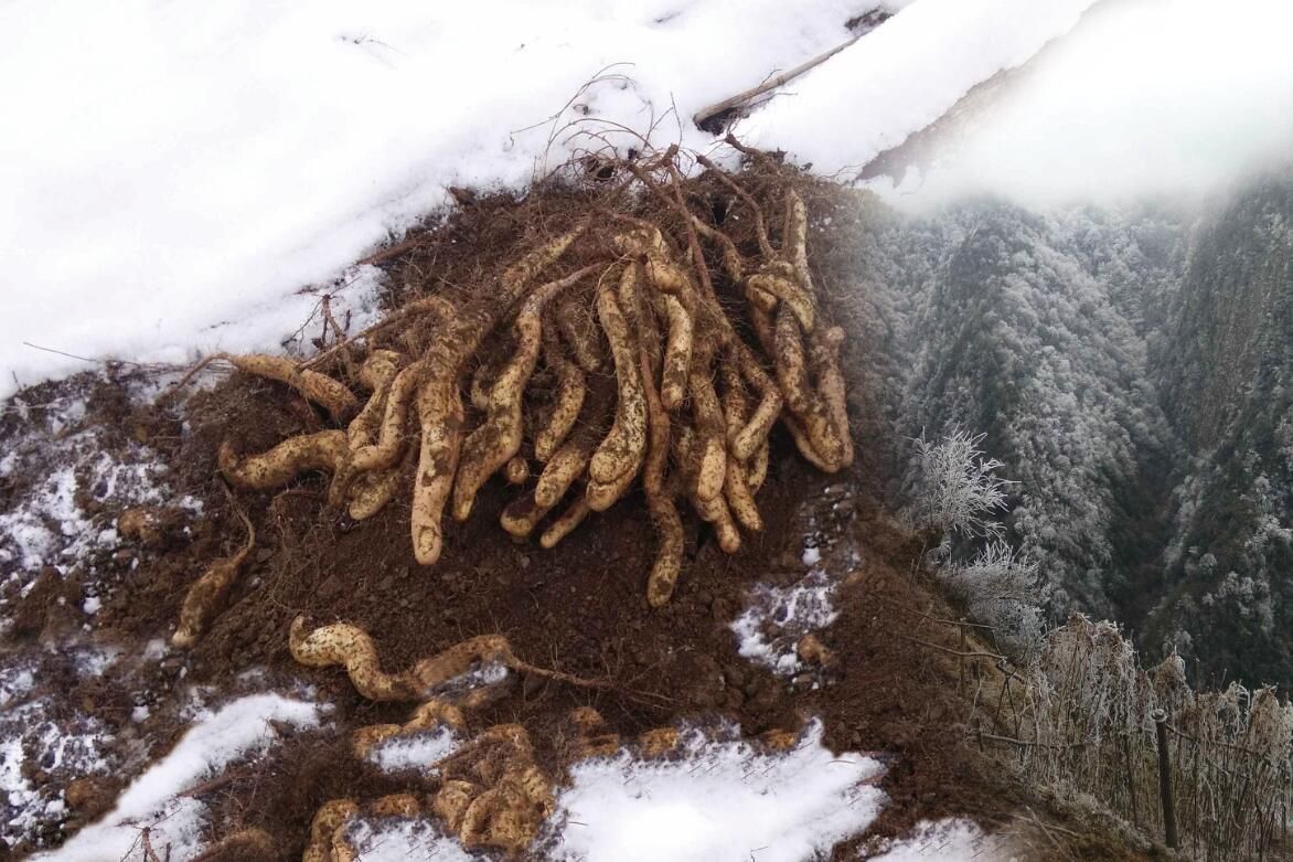 雅安宝兴县,世界第一只大熊猫发现地,也是对外输出大熊猫最多的地方,被称为:熊猫老家。全县年平均气温15摄氏度,植被覆盖率达72%,山地立体气候明显,地广人稀,拥有众多国家珍稀动植物。董山药主产区为宝兴县五龙乡铁坪山村岩盐山、干漆沟和百里坪,海拔2500-2900米。优质地形,土壤肥沃
