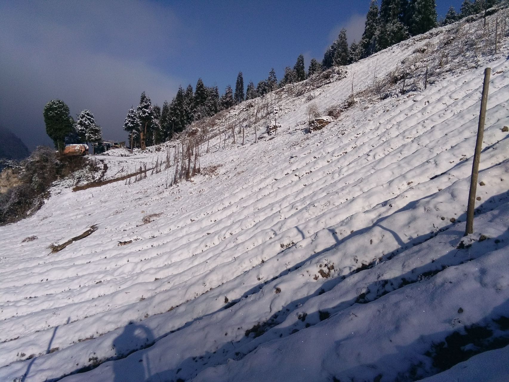 坡地地形,倾斜度大,渗水性好,独创分层浅种技术。经年的森林土壤,腐殖层深厚,土壤有机质丰富。