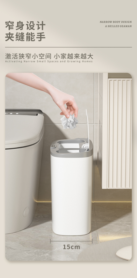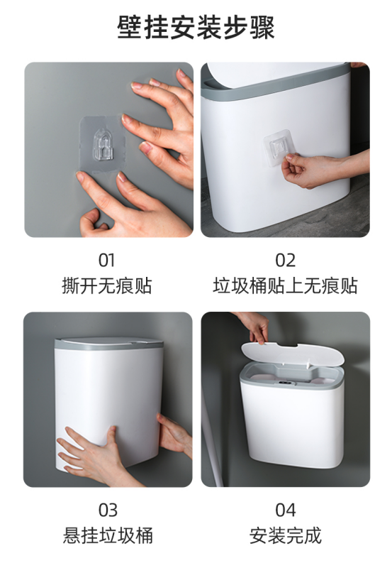 壁挂设计,拒绝弯腰 简约窄形,垃圾桶仅占15CM 利用屋内缝隙,夹缝放置 可壁挂上墙,亦可地面放置 有效节省空间,满足您的需求