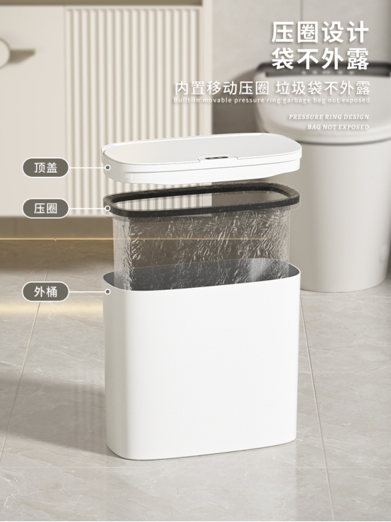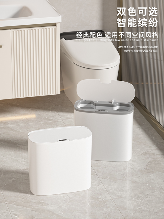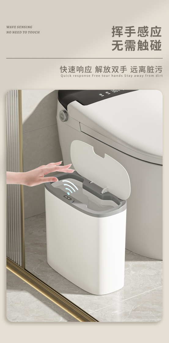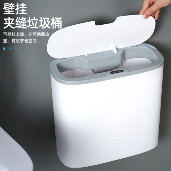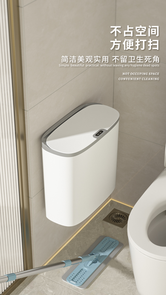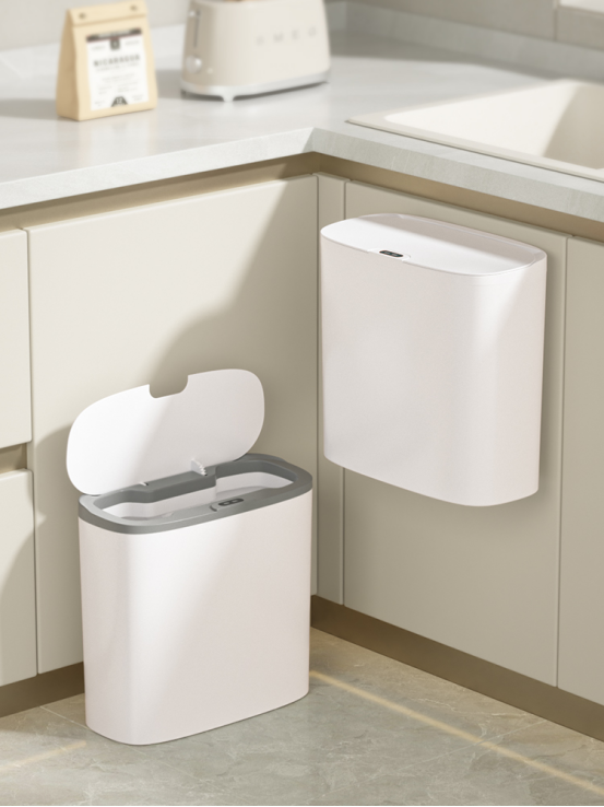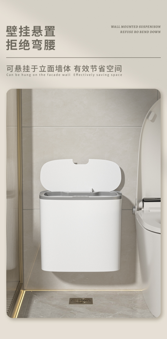 【智能垃圾桶可壁挂】✨0.3s速开、IPX5级生活防水、14L大容量! 🌸壁挂设计、夹缝设计、3色可选、多场景适用!防尘盖设计,IPX5级生活防水,防潮防异味👏