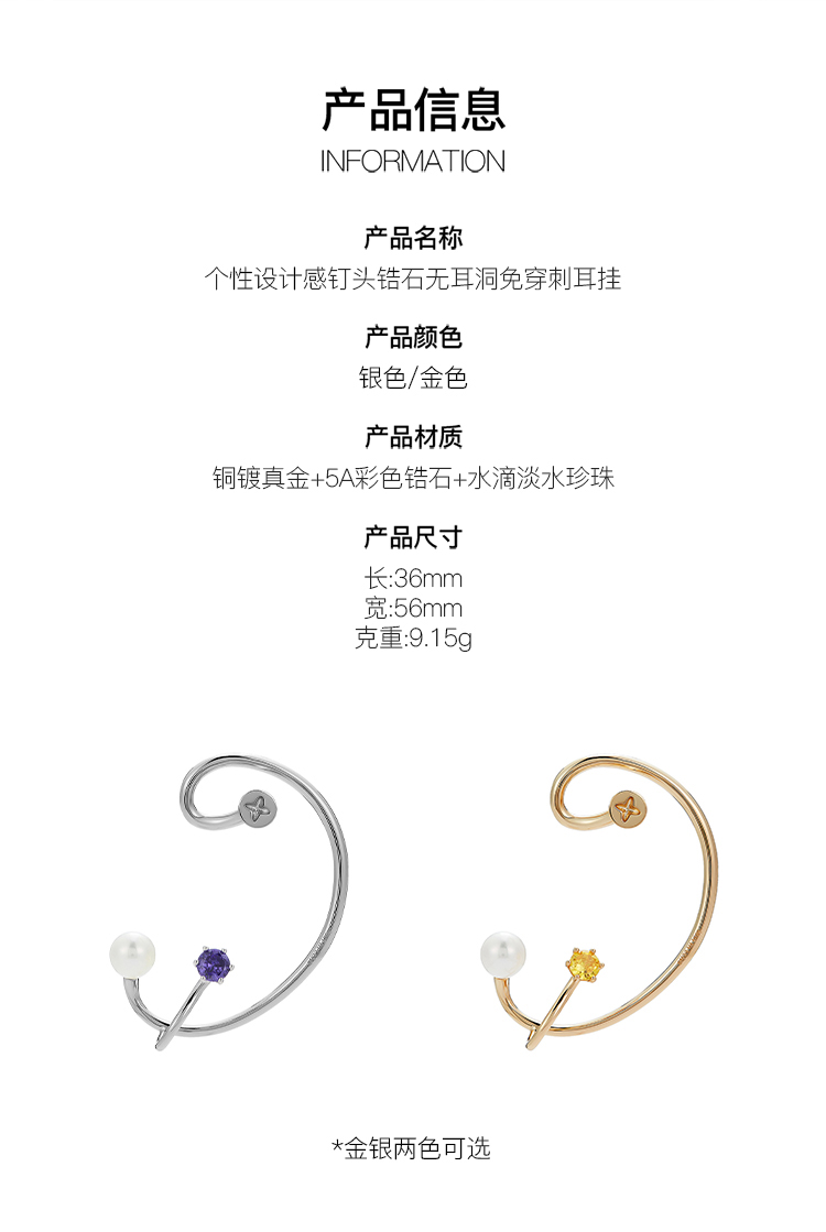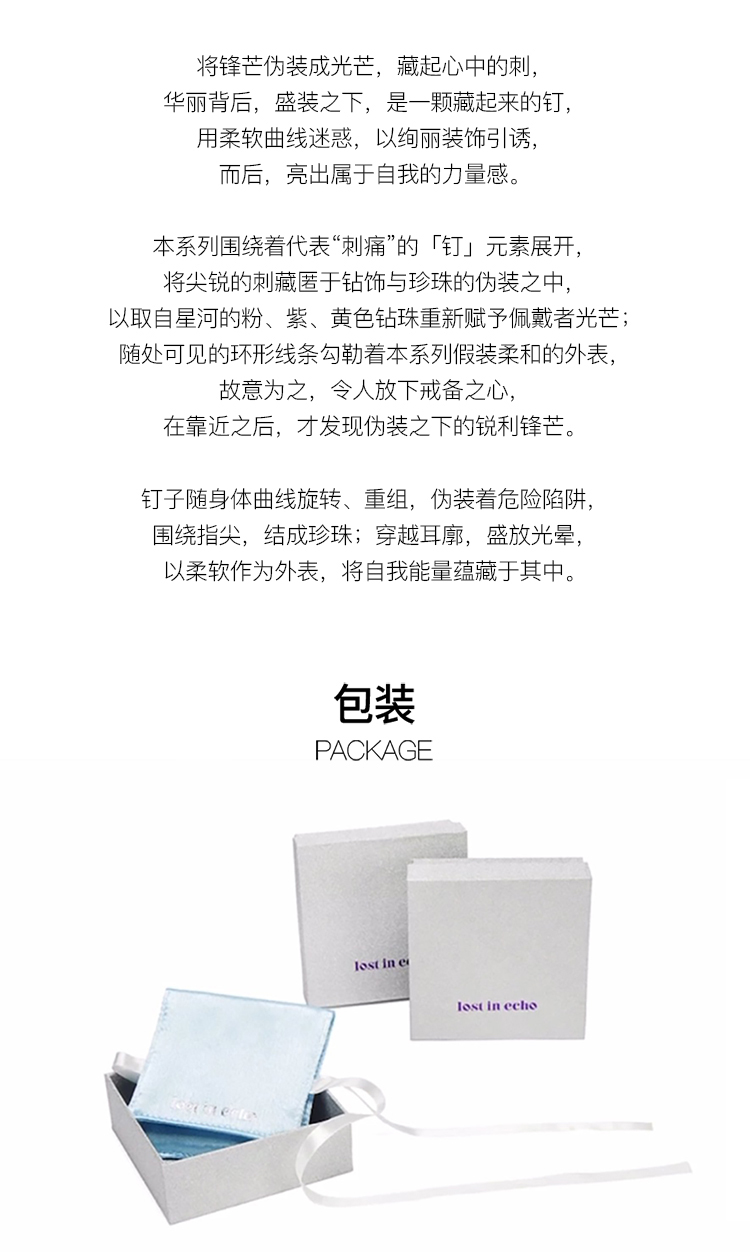 lost in echo 原创设计师品牌 个性设计感钉头锆石无耳洞免穿刺耳挂
