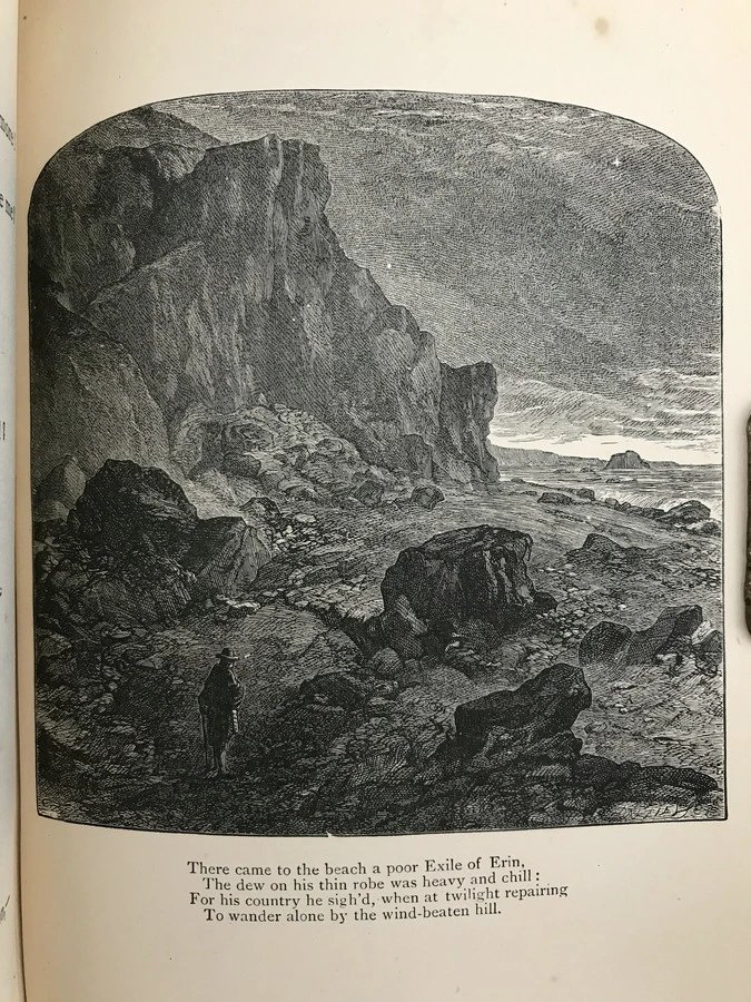 特装本!约19世纪后期 坎贝尔诗集 9幅版画插图 全真皮精装36开