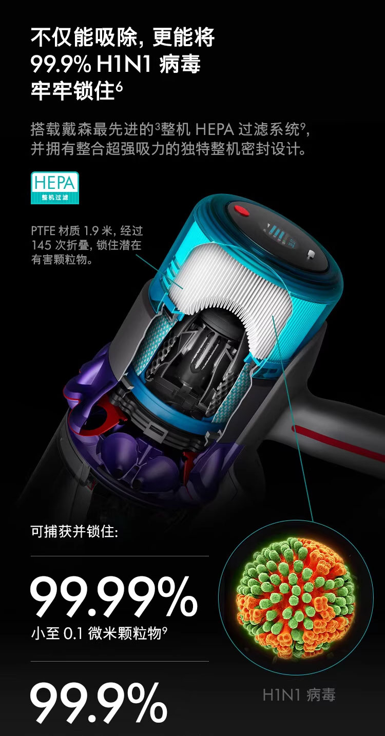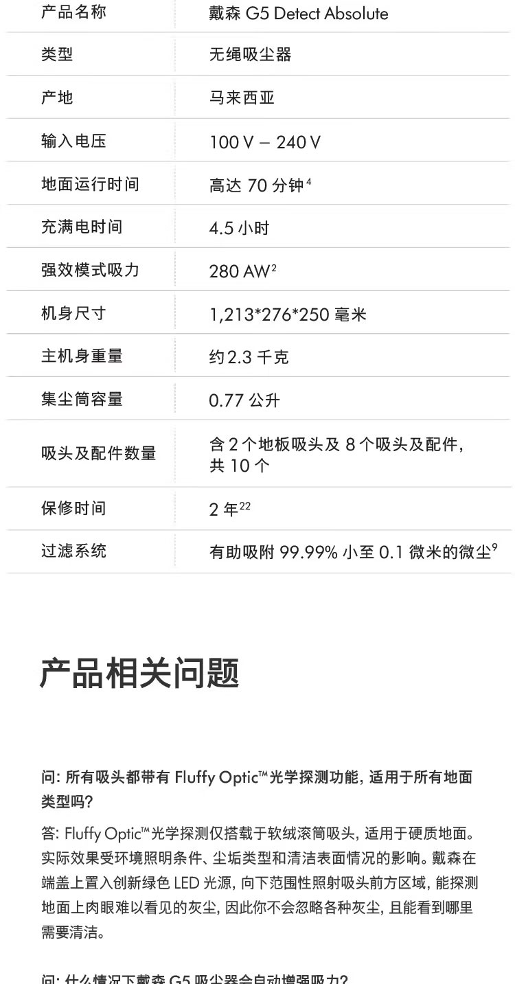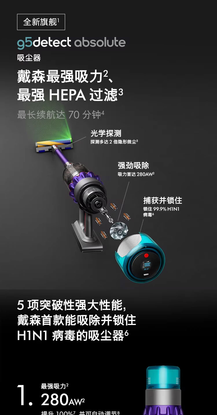 戴森(DYSON)G5 Detect Absolute手持无线吸尘器 除螨 宠物 家庭适用
