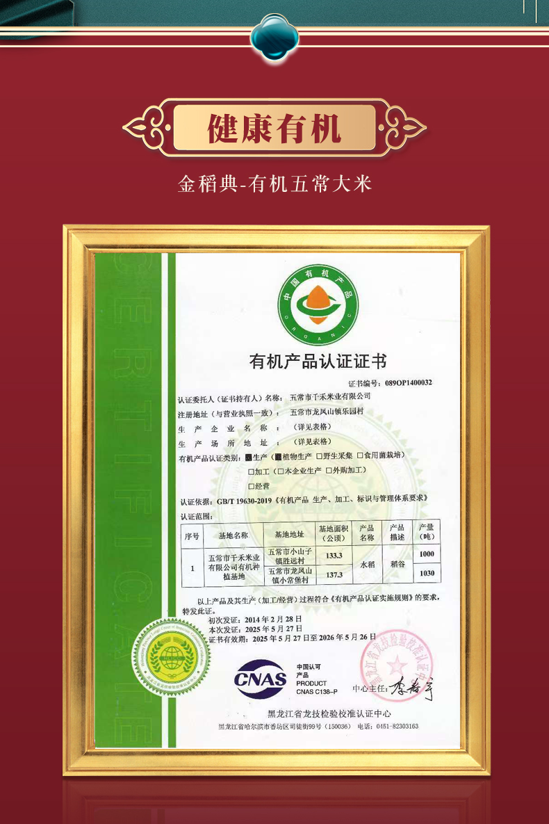 疯抢中!!25年10月新米【五常稻花香2号·有机大米】原产地直发 三标认证PICC承保 执行标准GB/T19266 5/10斤包装