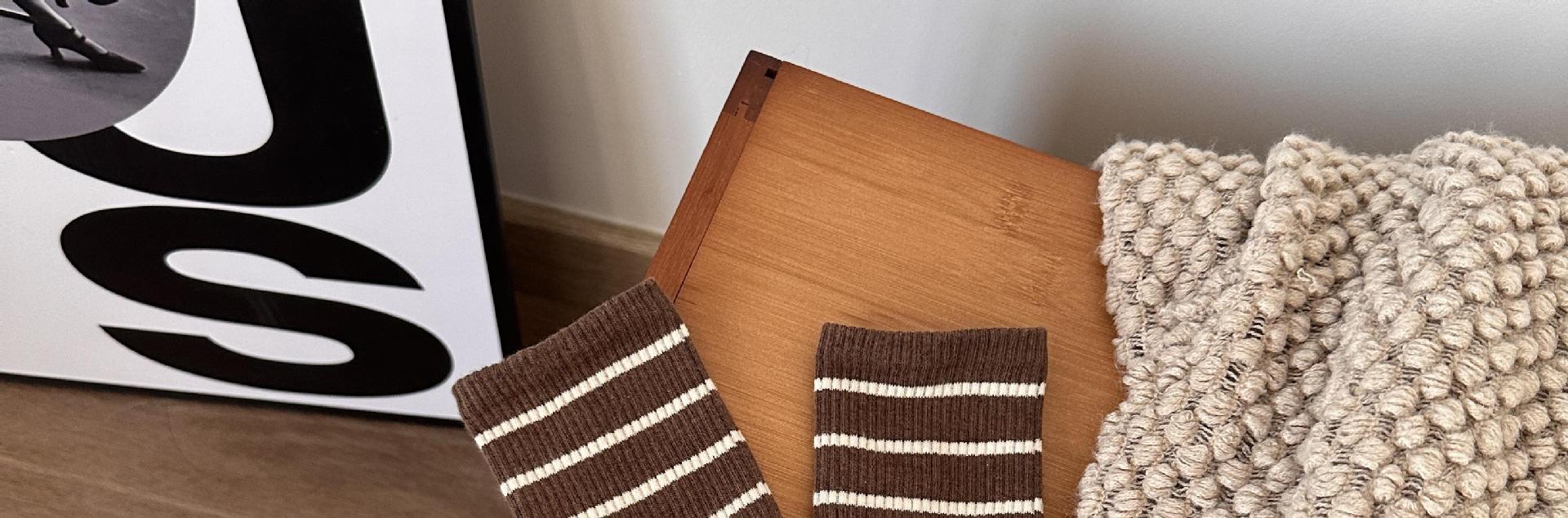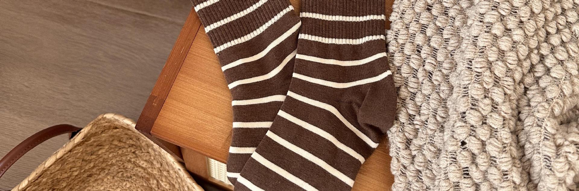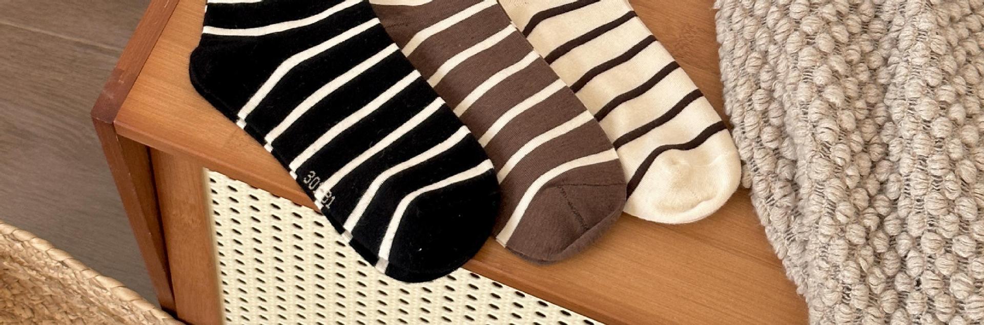 超值5双【保暖亲肤❗️透气吸汗】袜子女条纹简约高筒袜外穿中长款ins潮百搭款黑白秋冬学院风女袜。ja