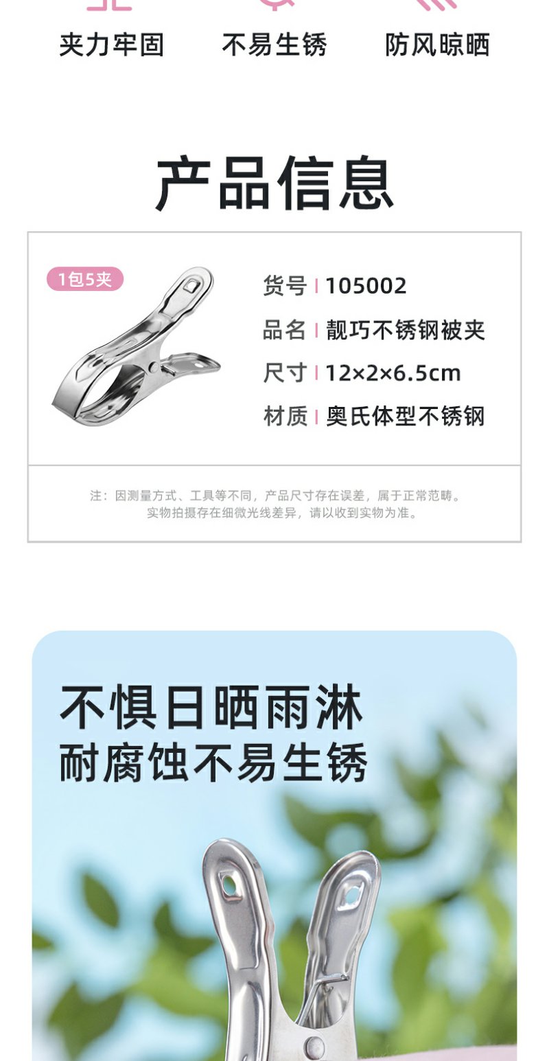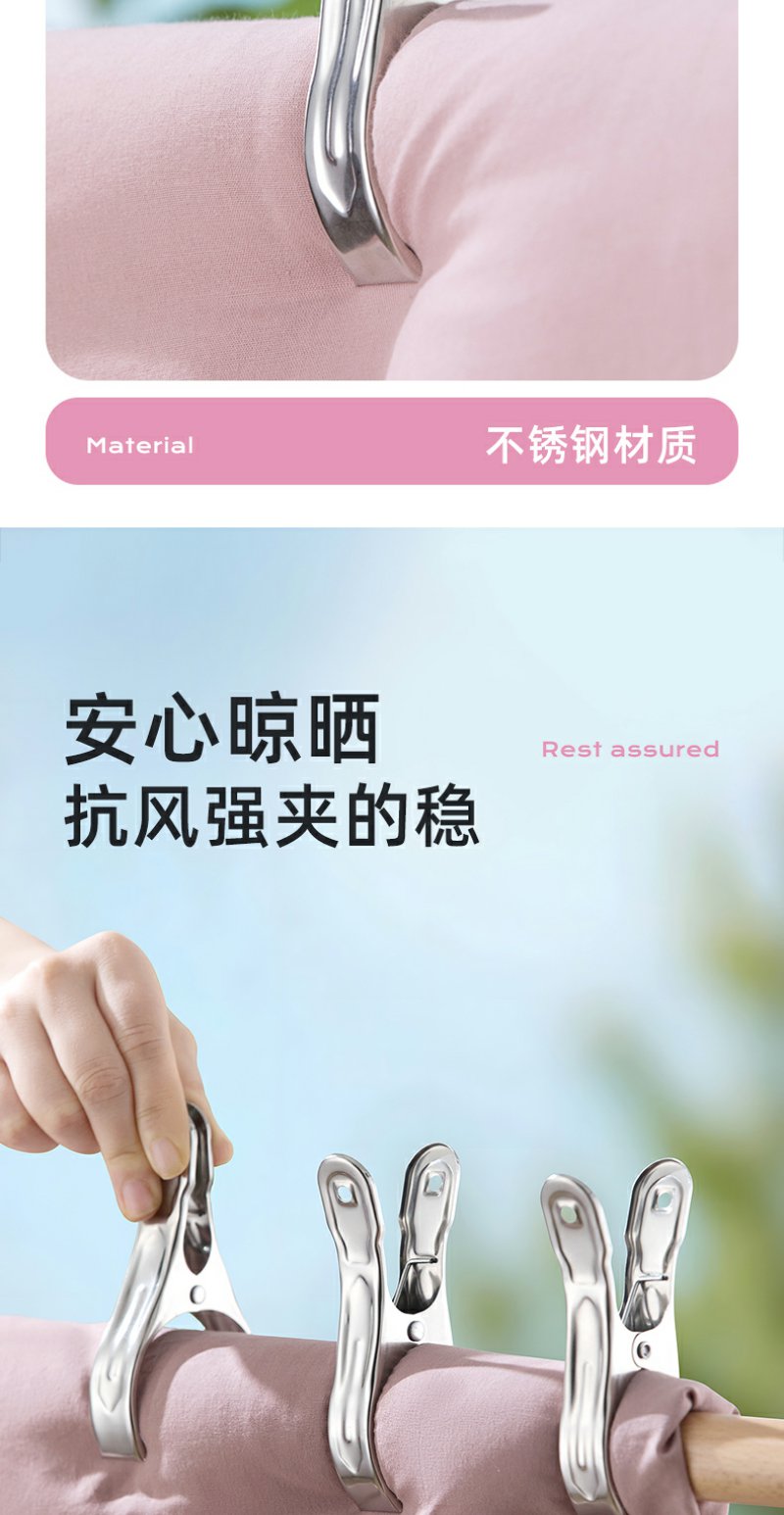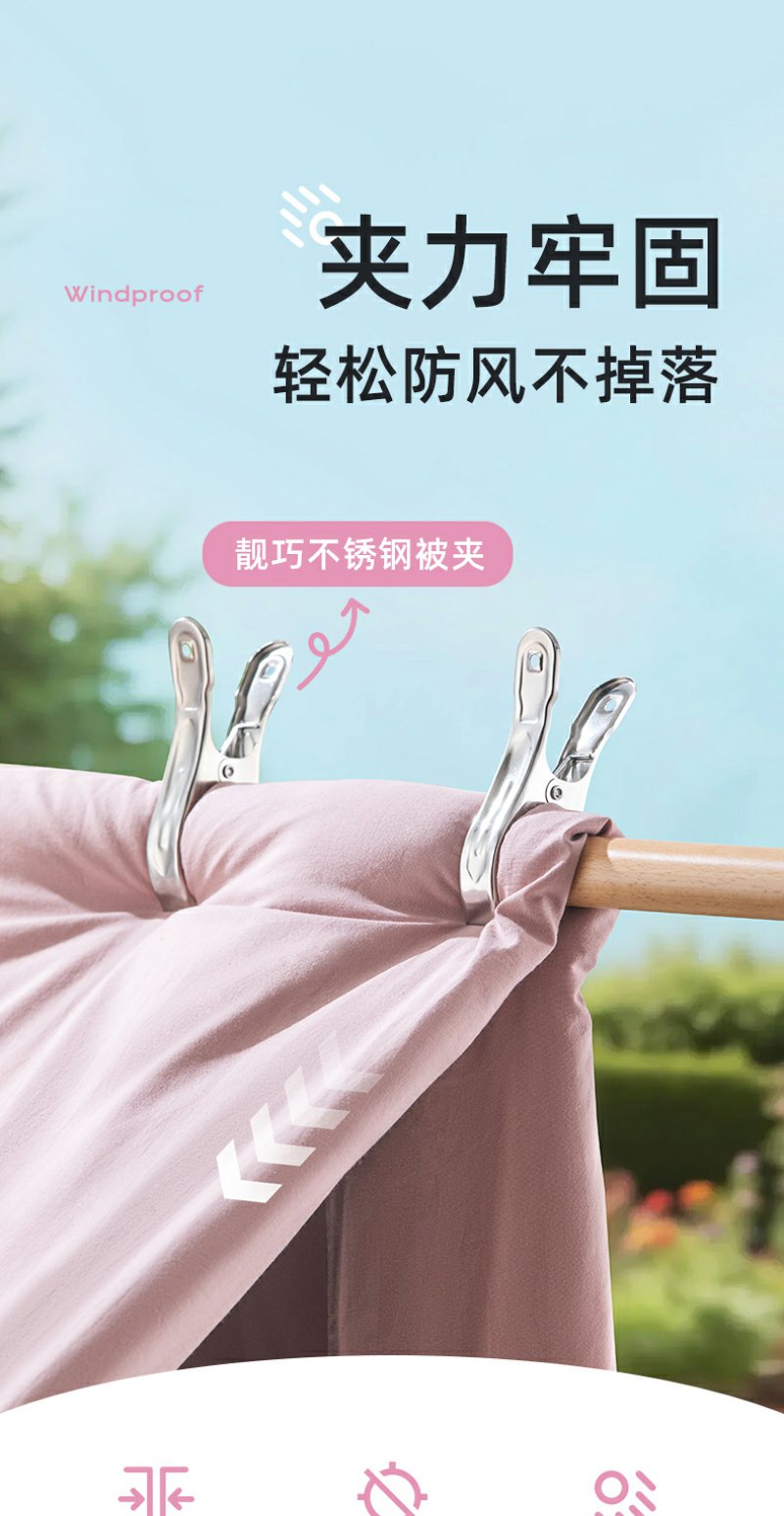 【茶花】不锈钢被夹晒被子晒衣服防风夹子