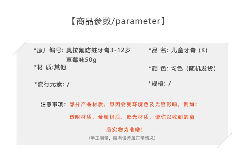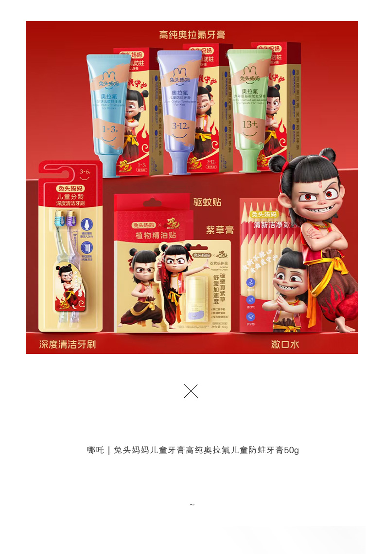 兔头妈妈奥拉氟防蛀牙膏3-12岁草莓味50g儿童牙膏161919042