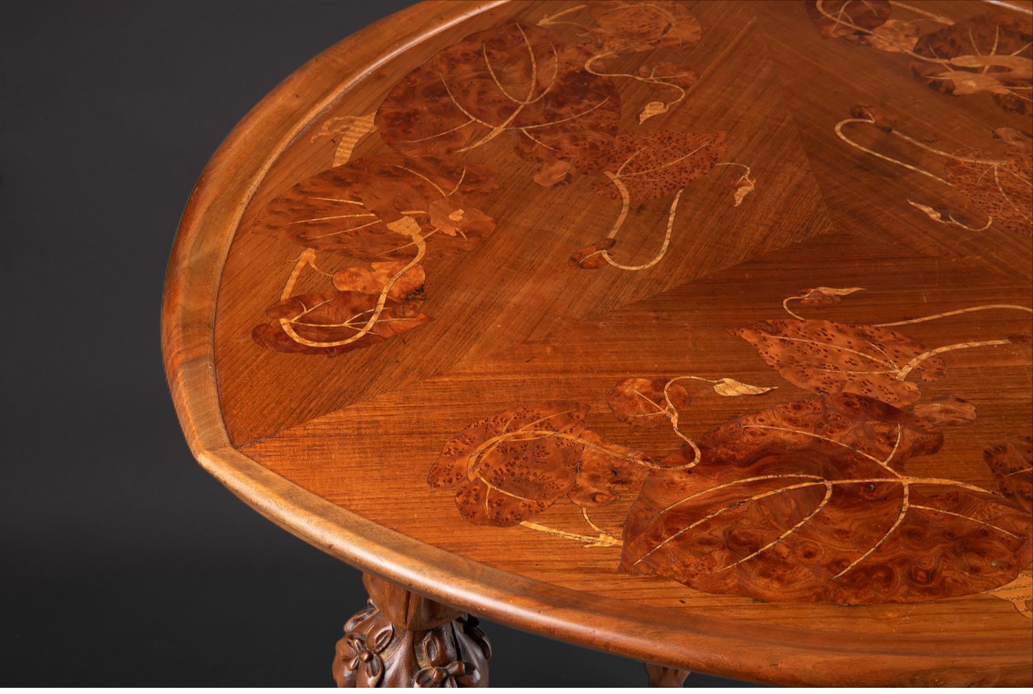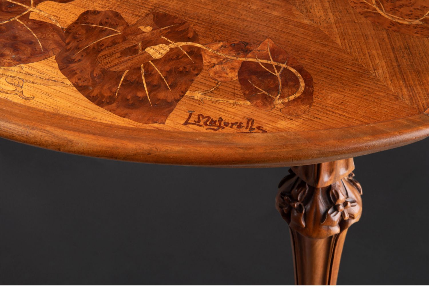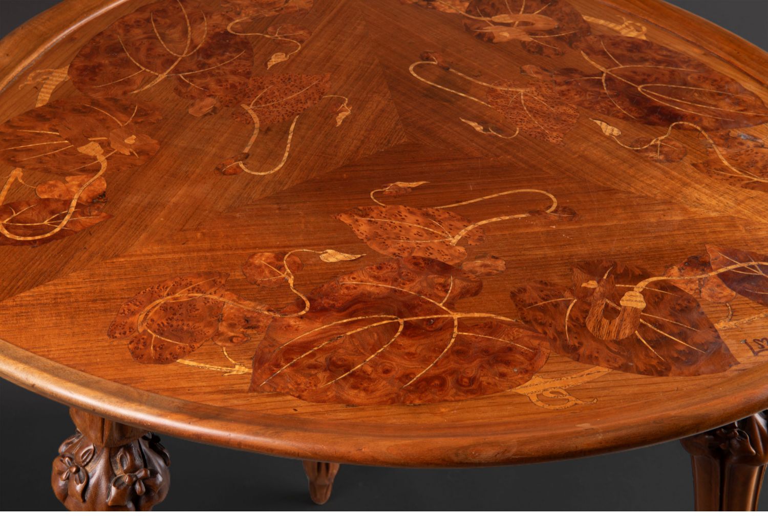 独角鹿西洋古董家具法国出品新艺术风格实心胡桃木细木镶嵌三足桌
