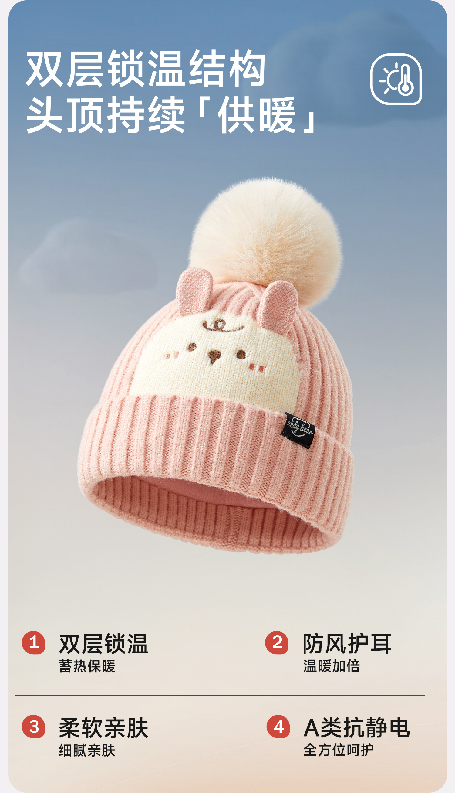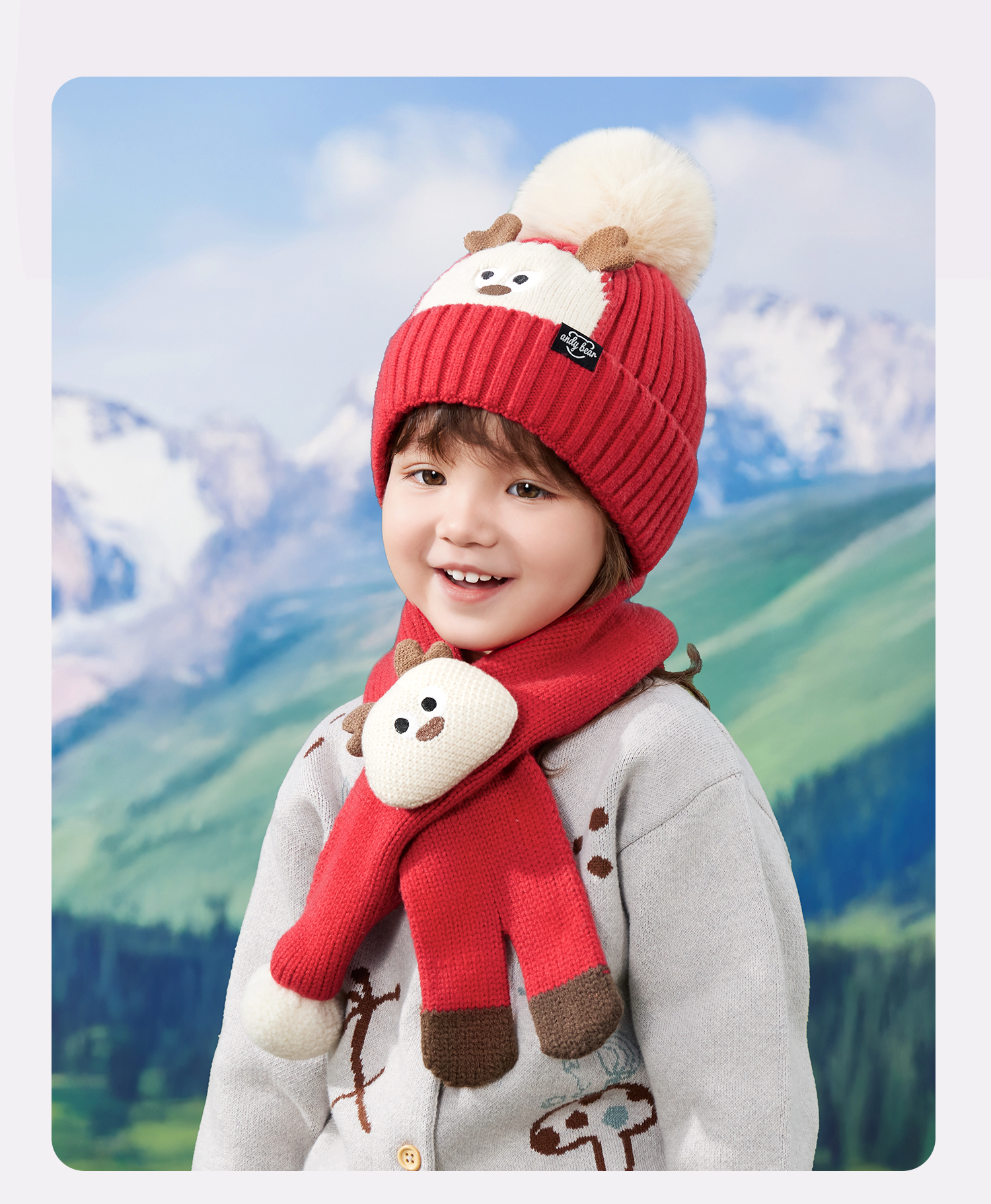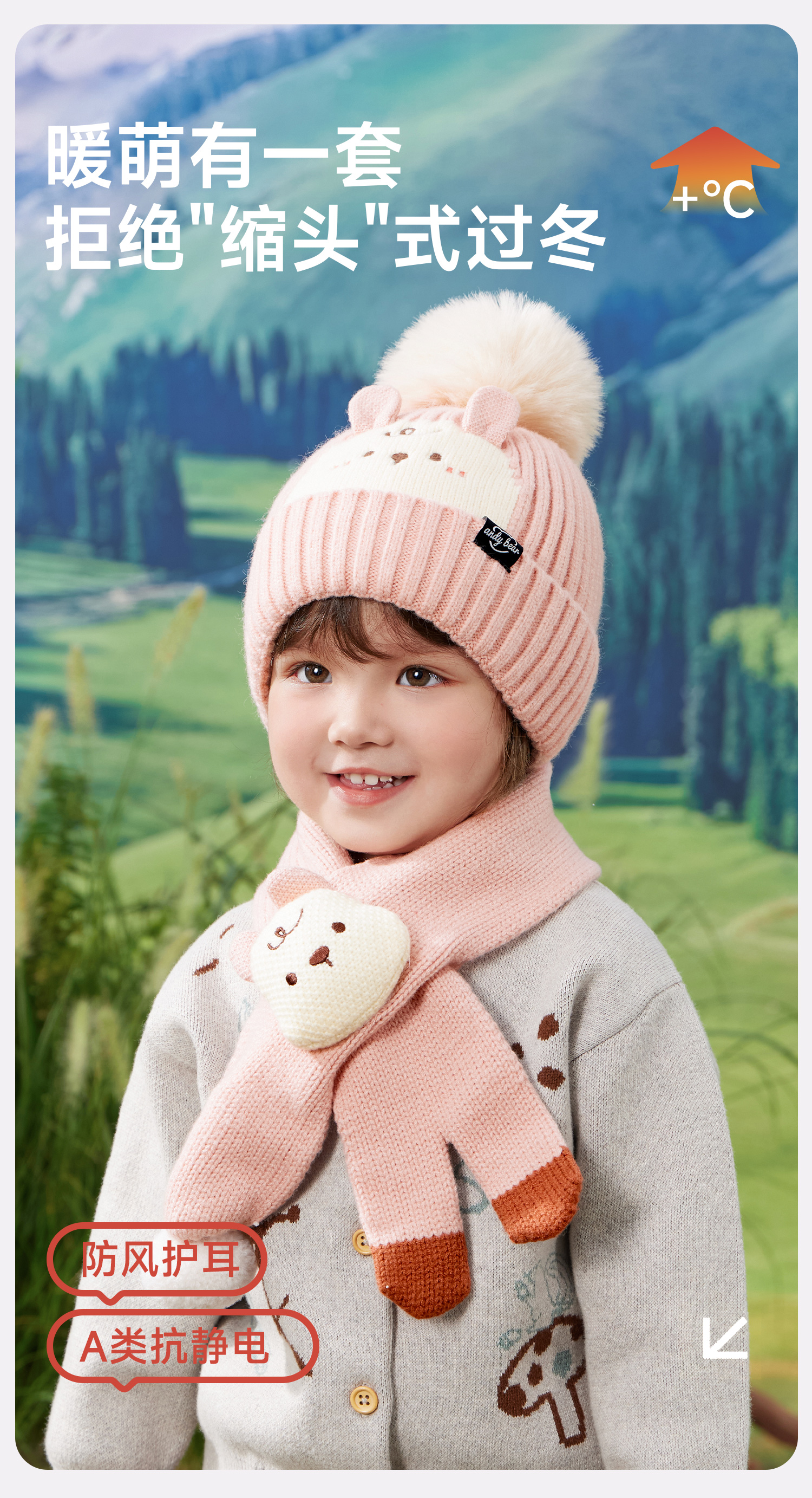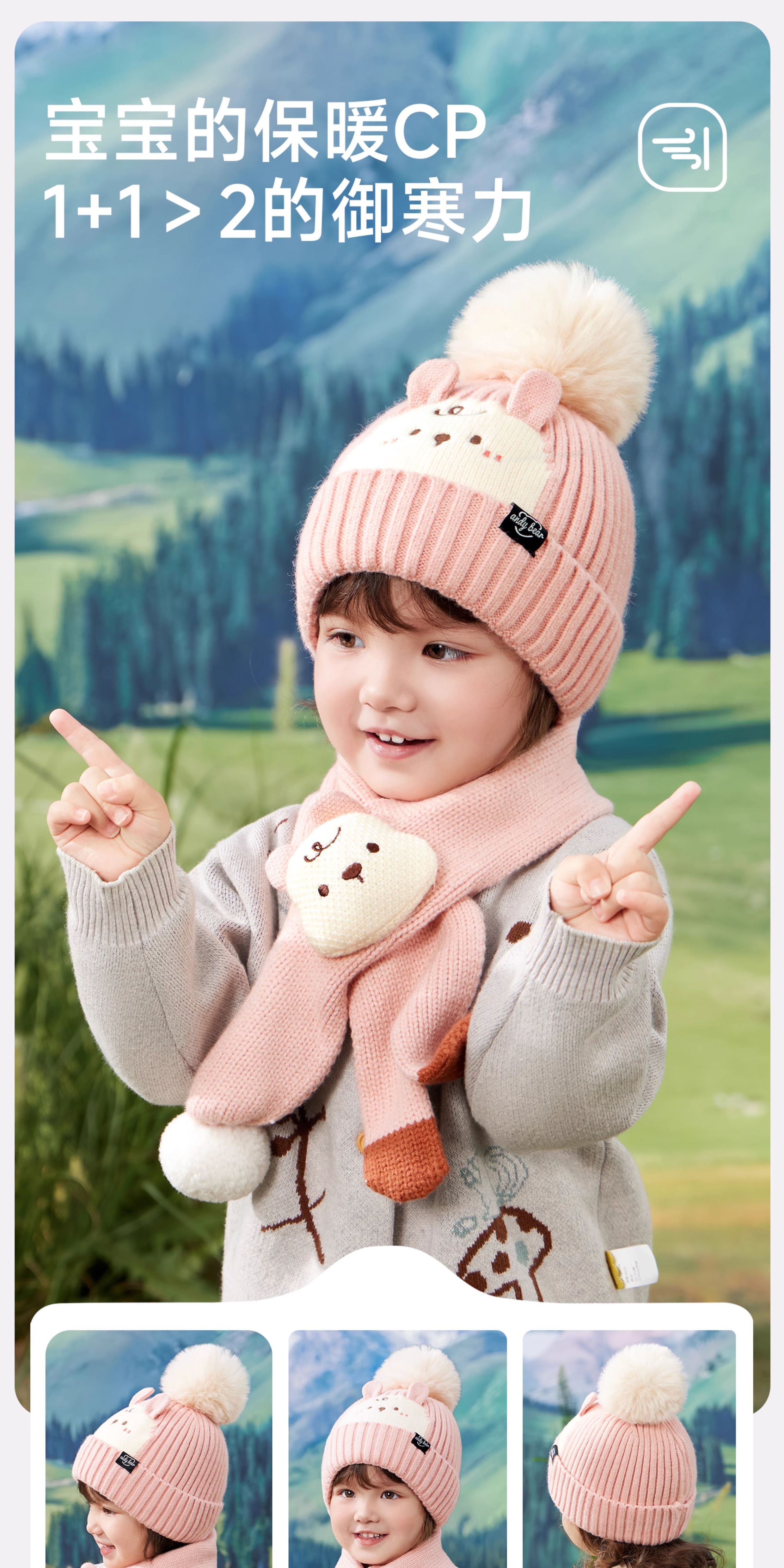 儿童帽子秋冬季婴儿针织毛线帽男童女孩宝宝护耳防风围巾新款防寒