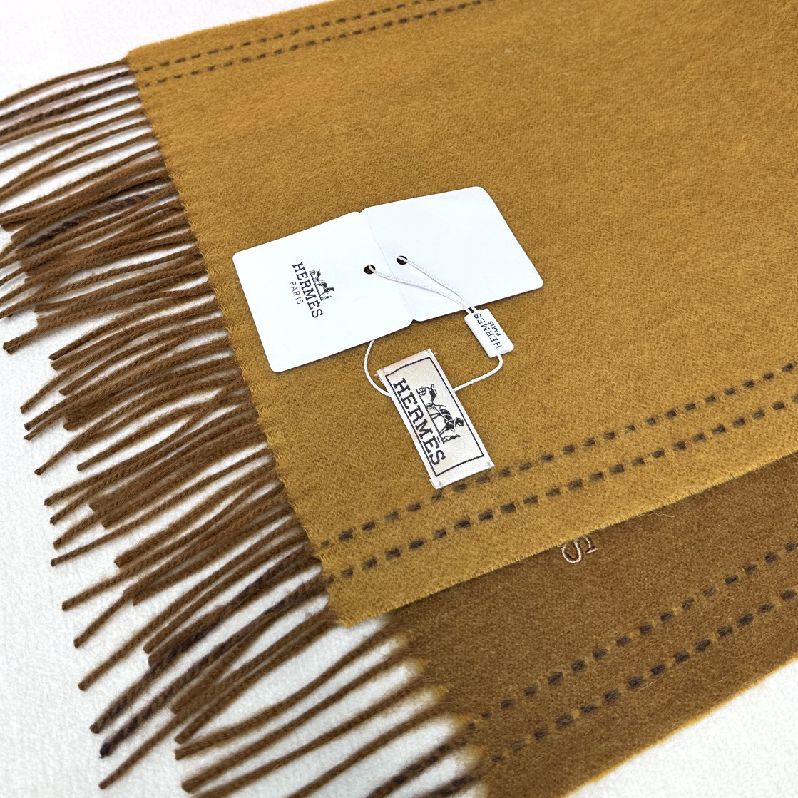 秋冬特惠💰300 HERMES🧣爱马仕围巾 巴黎时装展商务男士女士通用双面羊毛披肩 进行纯手工精梳处理 耗时耗力 再以清泉水浸泡涤荡 手感才如此细腻 最后以考究压印与熨烫工艺 才有奢华柔和的表面光泽 工艺特别复杂哦采用蒙古高原细羊绒!这个价格绝对百分之百的实惠!精湛绝伦的绣字工艺!送礼自留都不错!绝对好货!尺寸:200(含须)*32cm