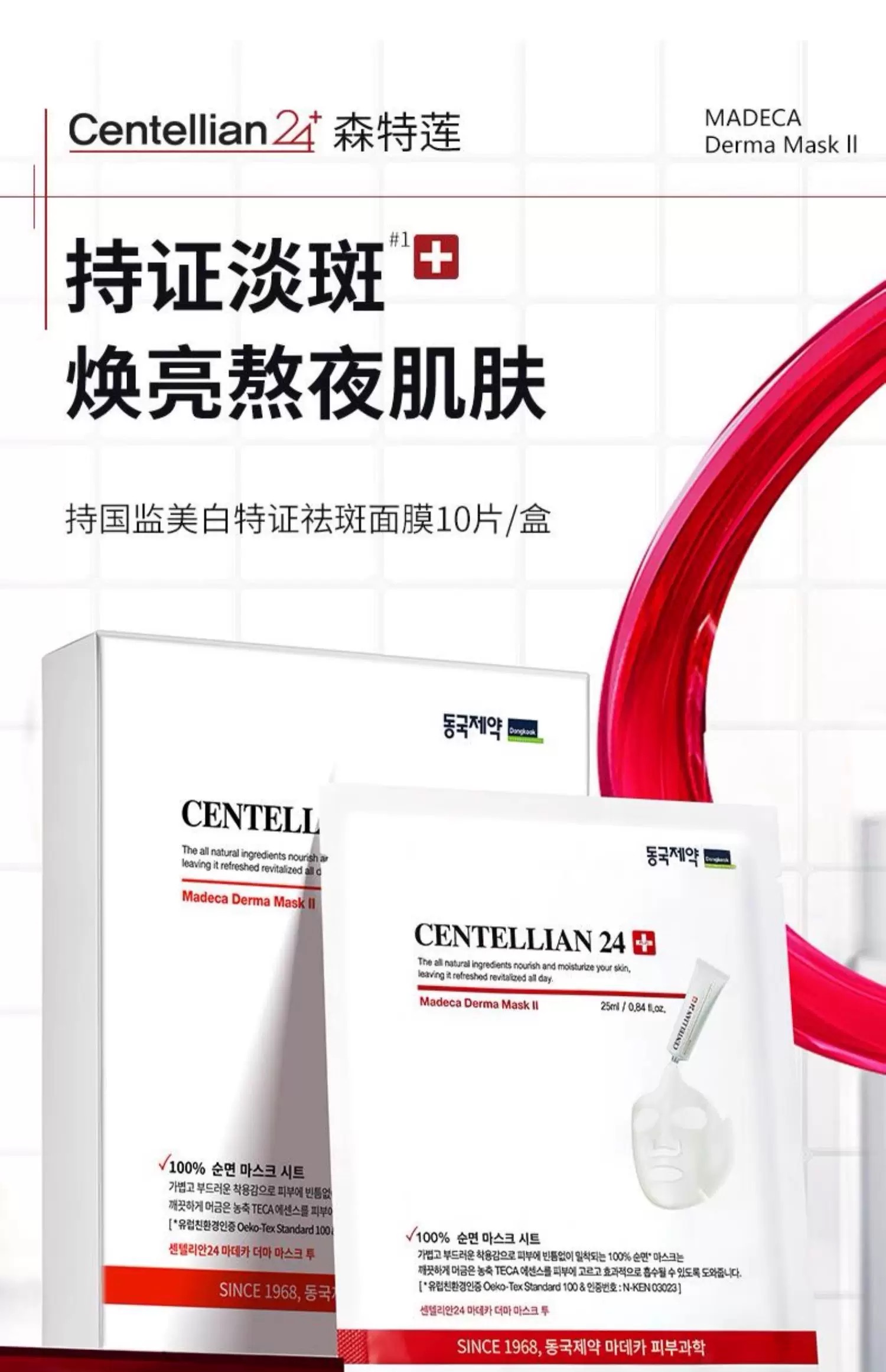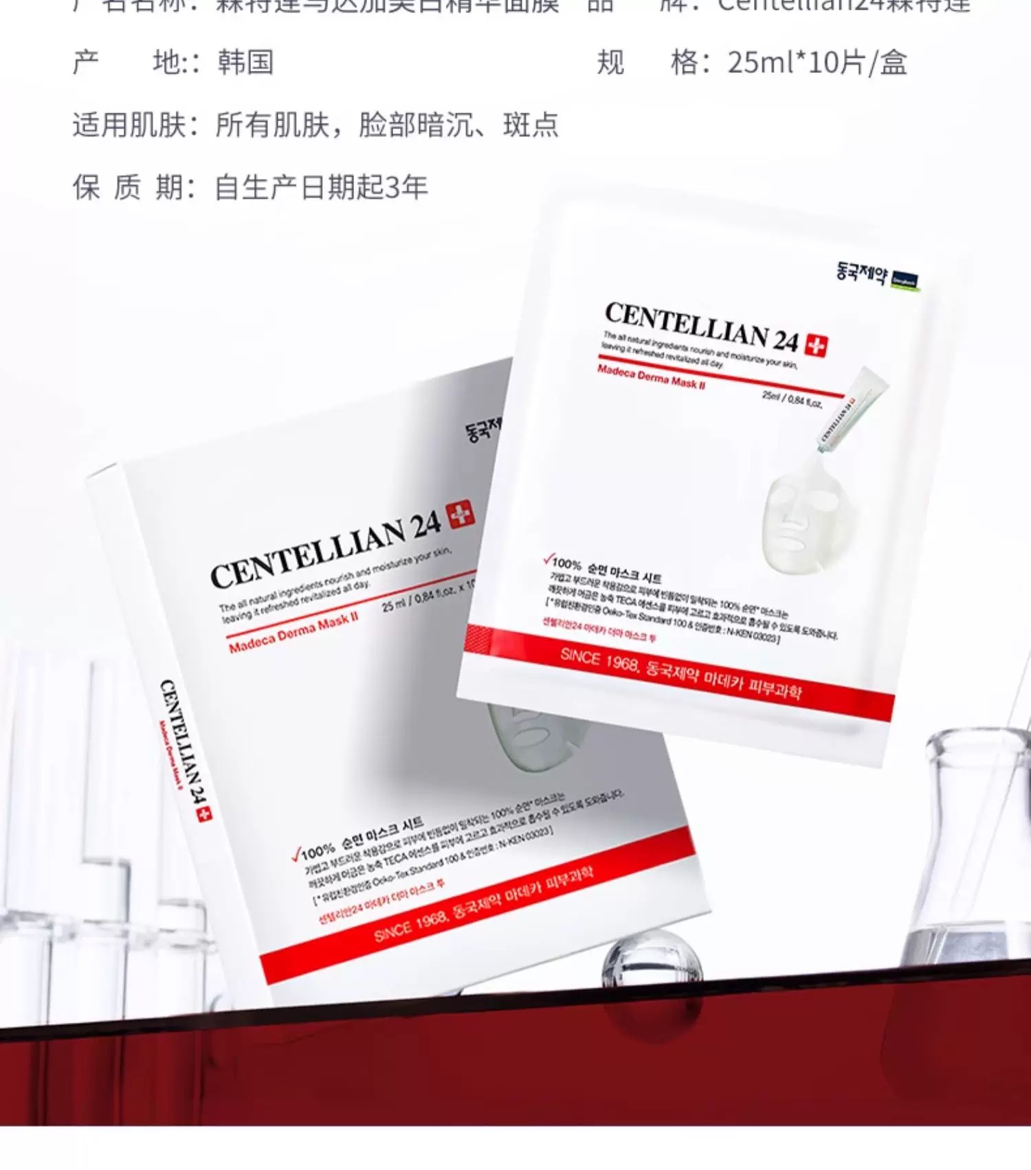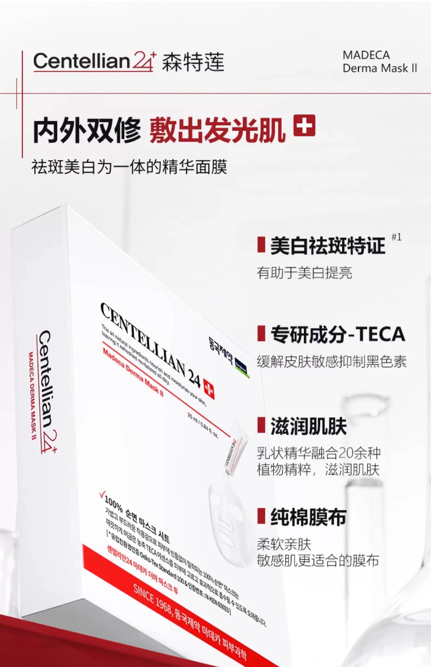 韩国Centellian24森特莲5G焕白面膜 马达加美白精华面膜烟酰胺淡斑滋养面膜一盒十片