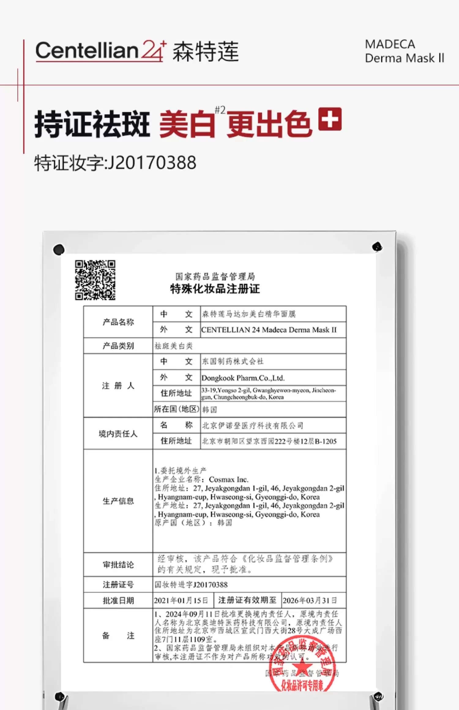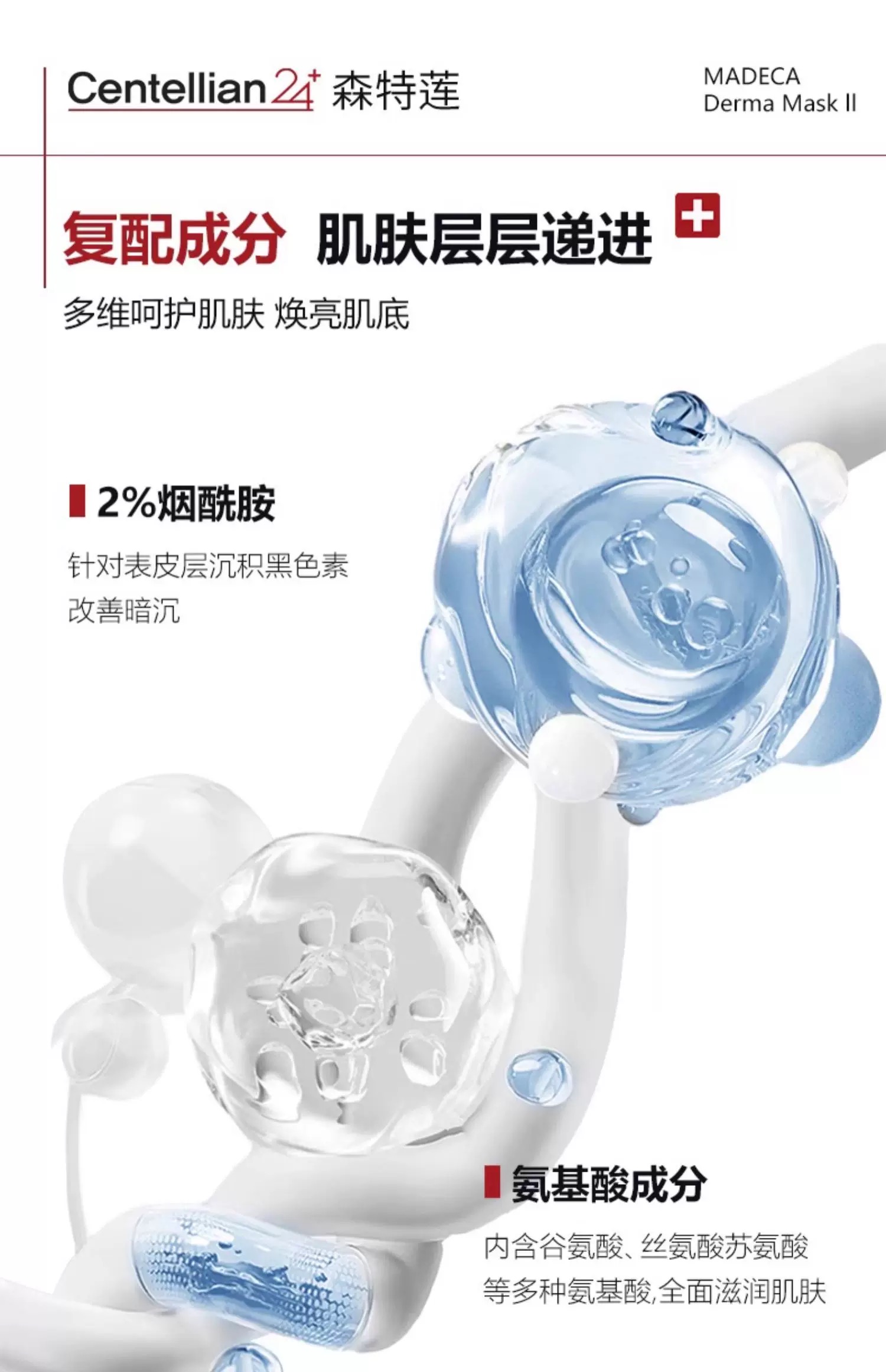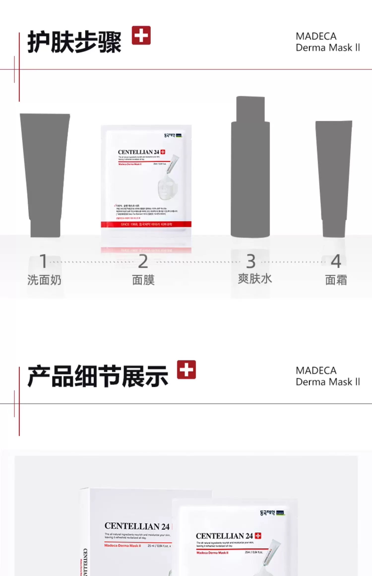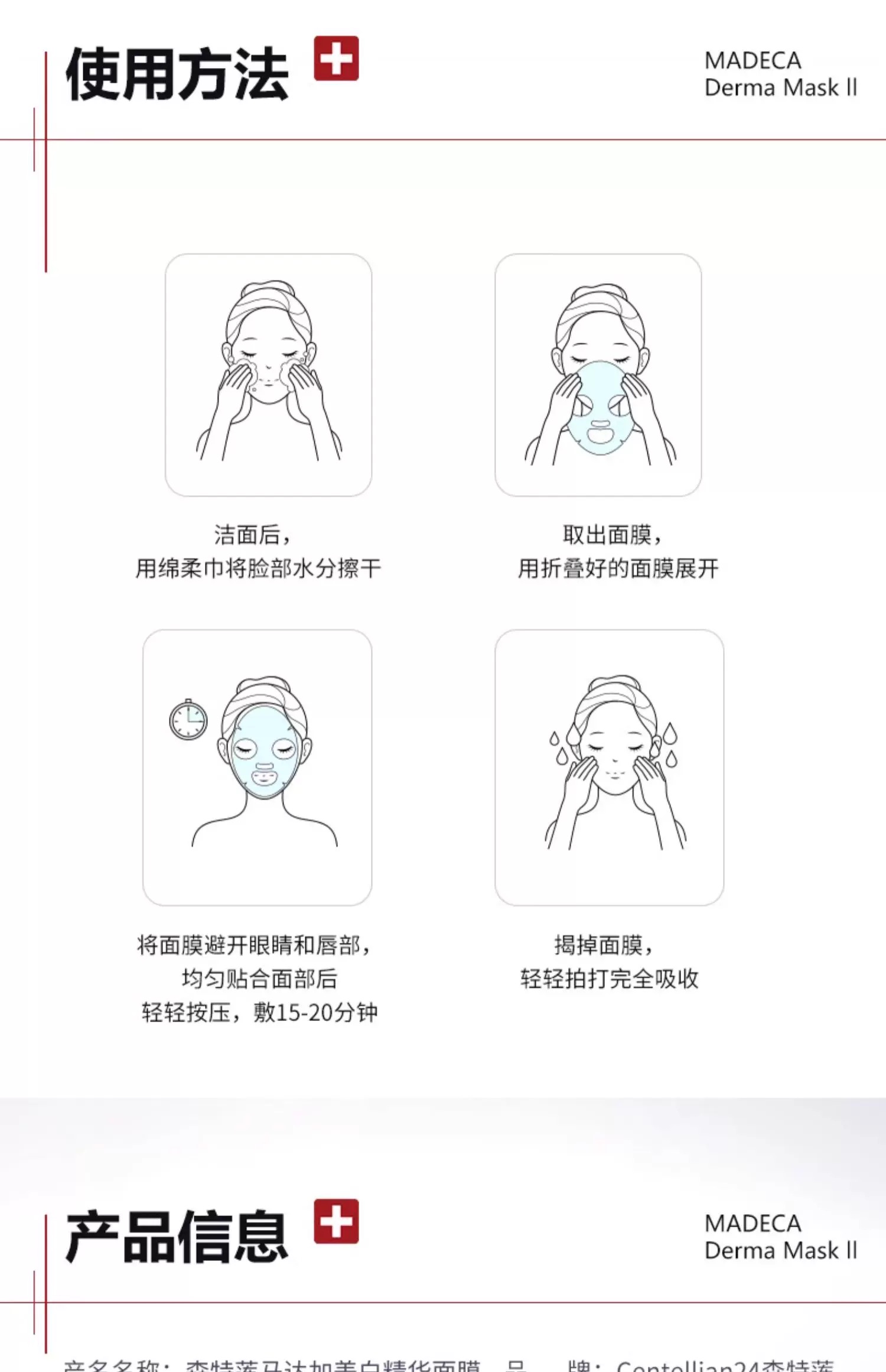 韩国Centellian24森特莲5G焕白面膜 马达加美白精华面膜烟酰胺淡斑滋养面膜一盒十片