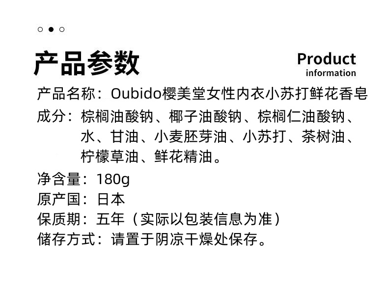 日本进口樱美堂-女性内衣小苏打鲜花香皂180g