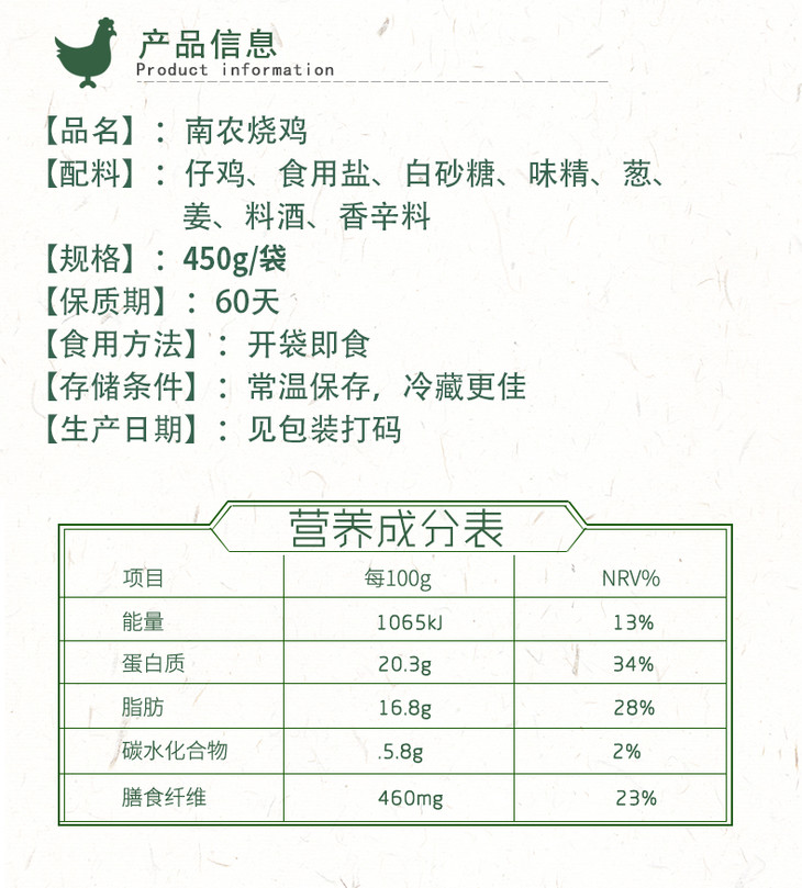 【南京特产】招牌正宗南农烧鸡 精装 450g/袋 南京风味(南农)