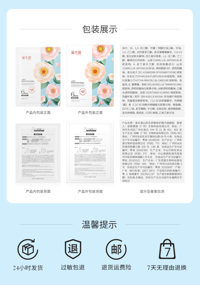 【29.9元任选6件!】溪木源山茶花舒敏修护精华面膜贴单片