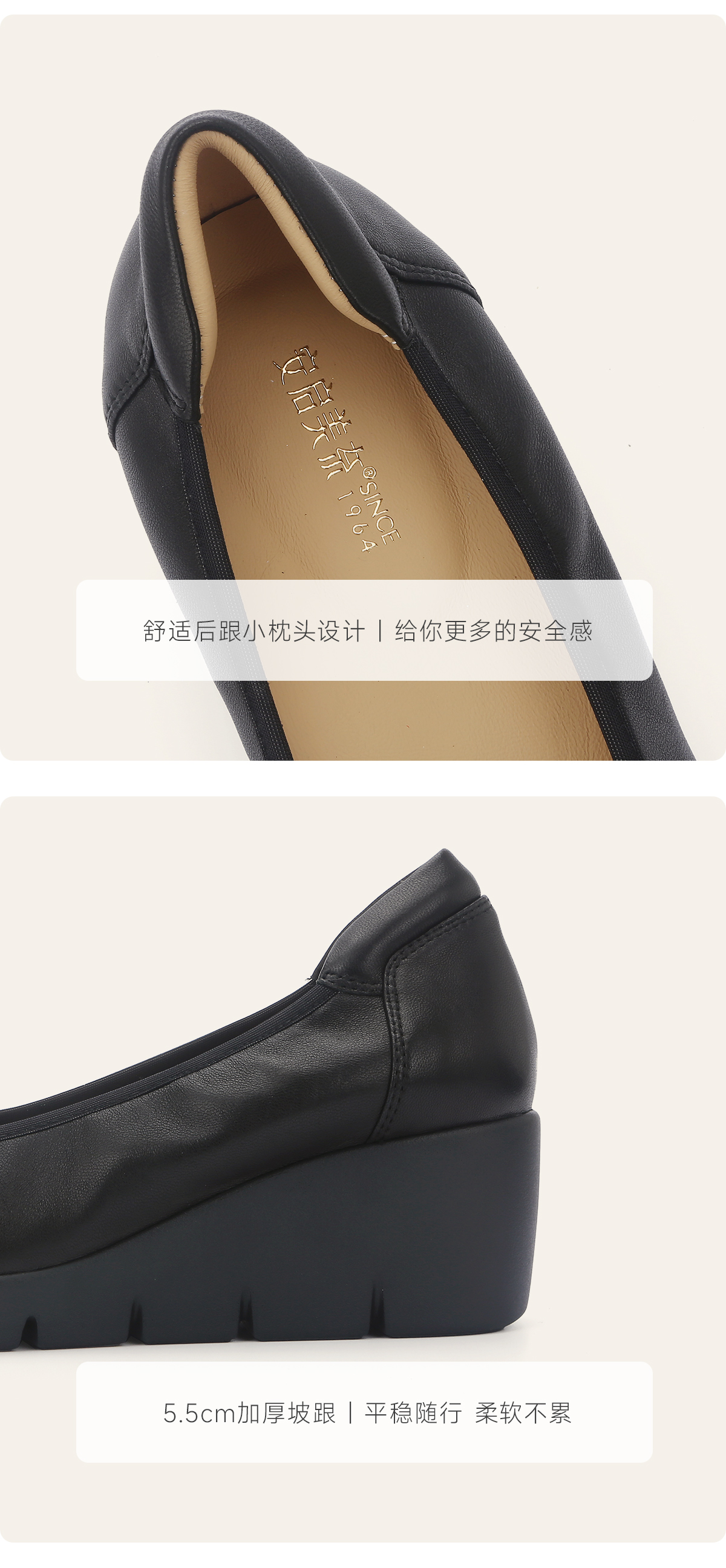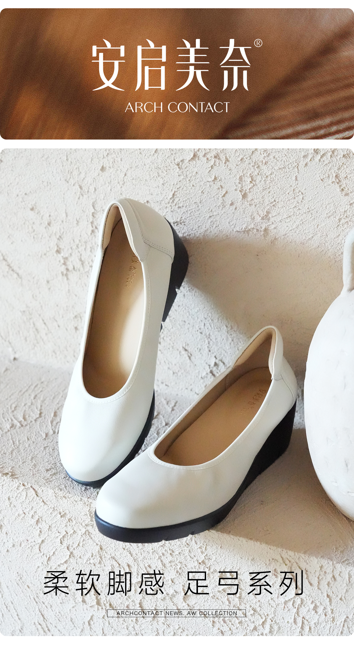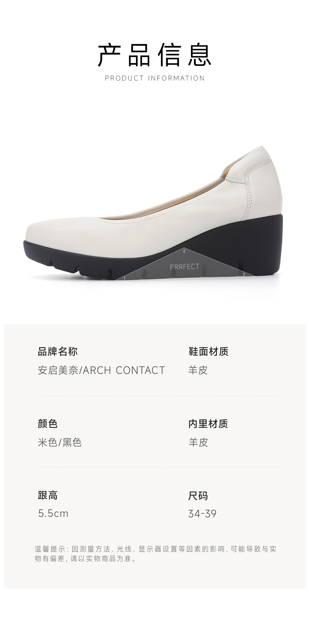 ARCHCONTACT安启美奈超轻久站舒适厚底坡跟小皮鞋52973-1