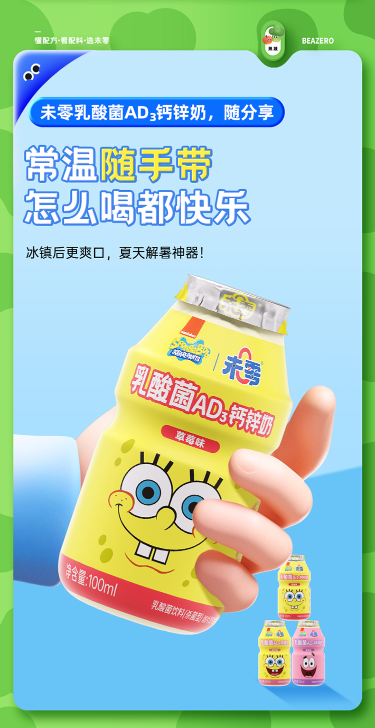 【双12】未零乳酸菌AD钙锌奶 海绵宝宝儿童牛奶饮料AD钙营养健康饮品