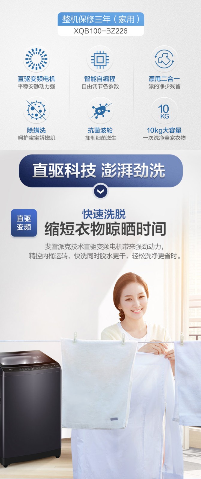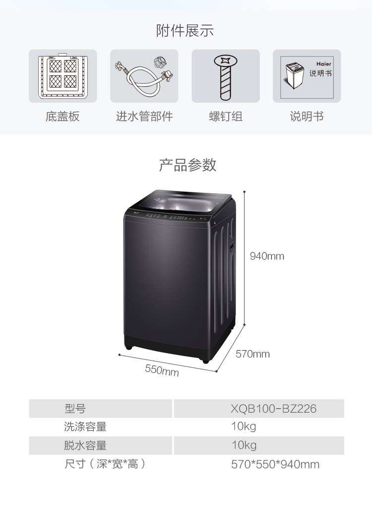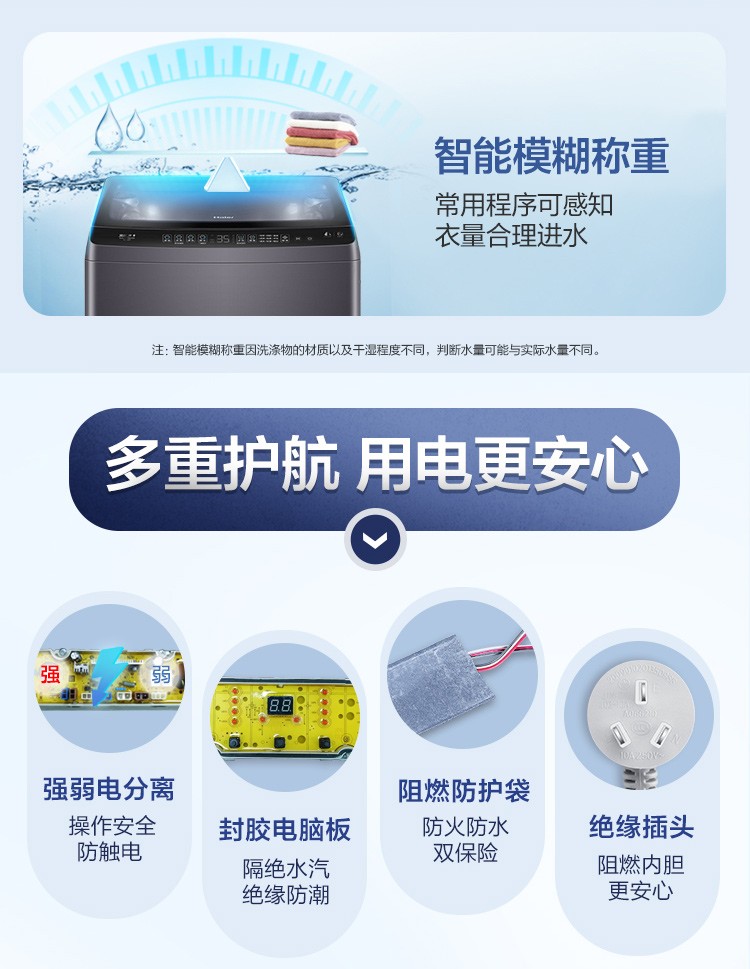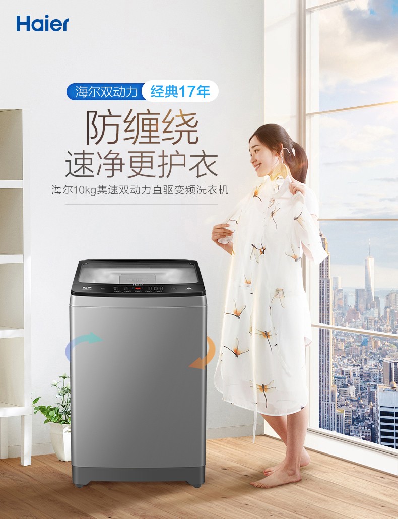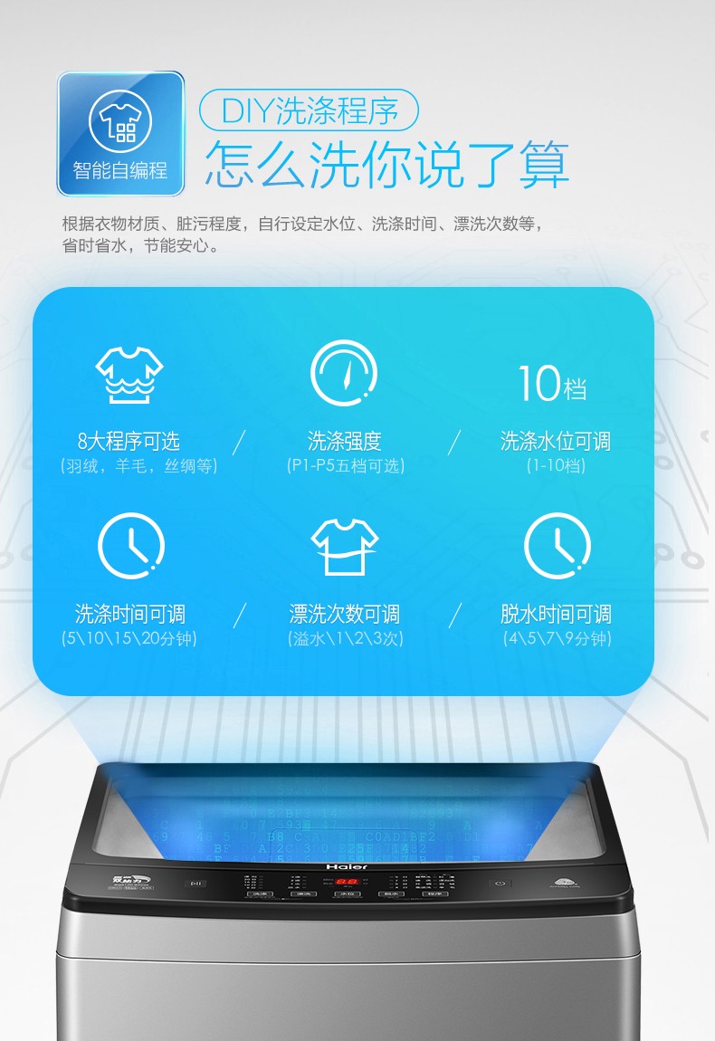 海尔(Haier)全自动洗衣波轮家用大容量直驱变频9-10kg公斤节能省电静音 10公斤直驱/紫外杀菌/MS100-BZ288U1