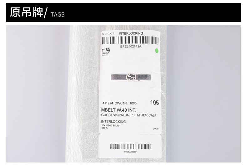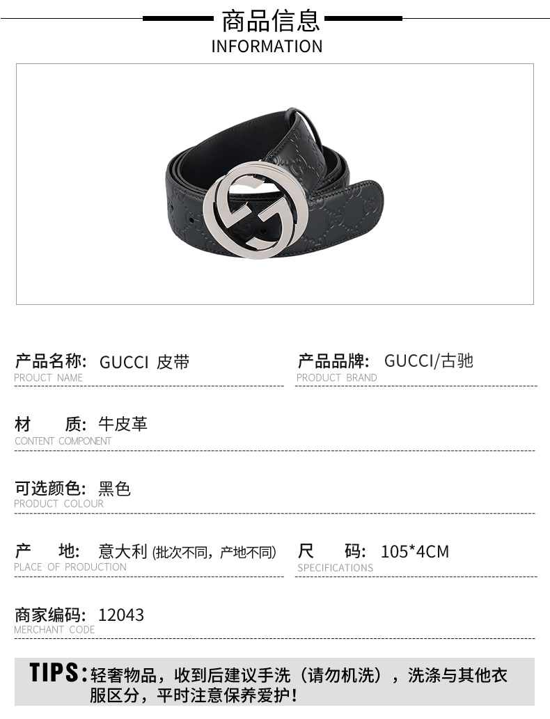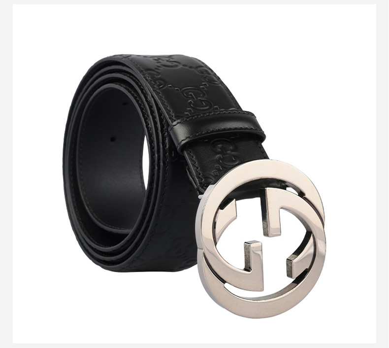 Gucci 古驰男士皮革印压双G logo真皮腰带12043