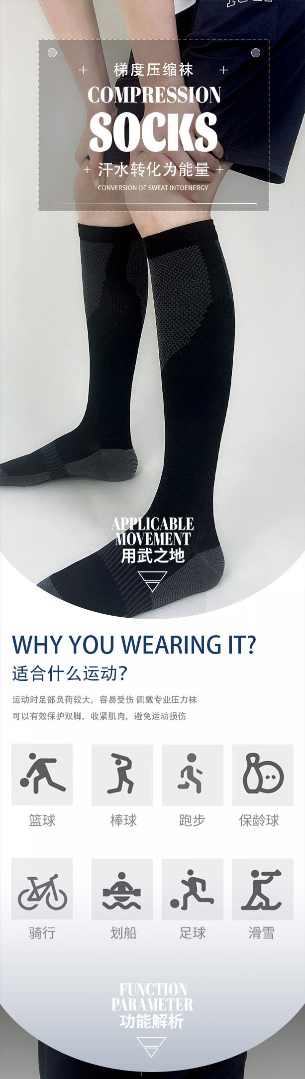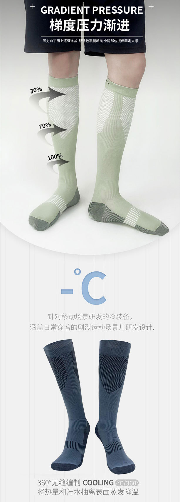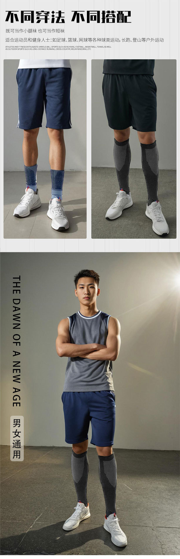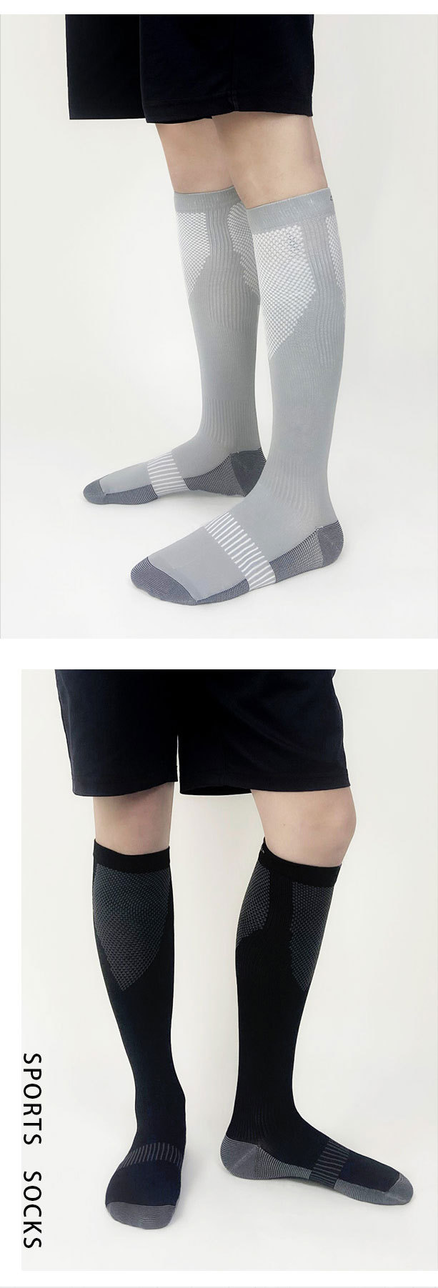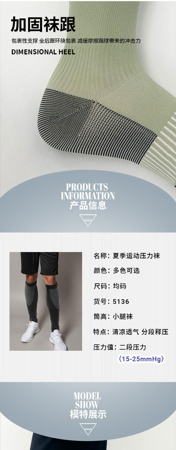 【运动压力袜】男士薄款撞色吸汗透气防臭压缩袜 跑步健身跳操小腿袜  商品图6