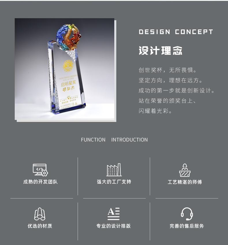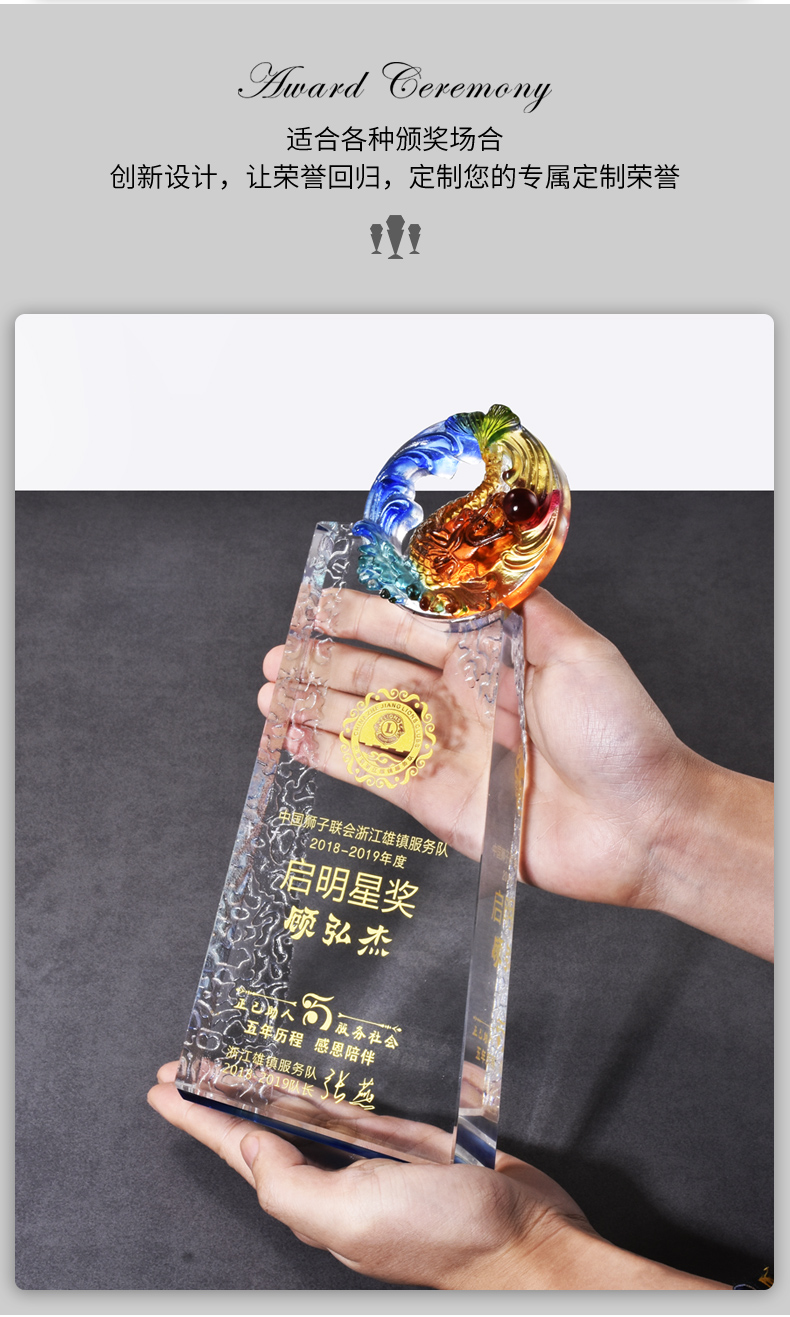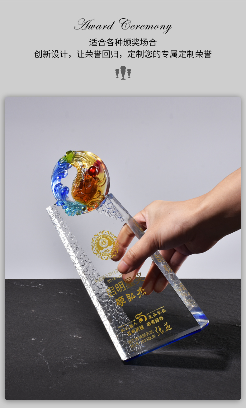 创意高档琉璃奖杯定制公司年会优秀员工颁奖水晶奖杯制作纪念定做