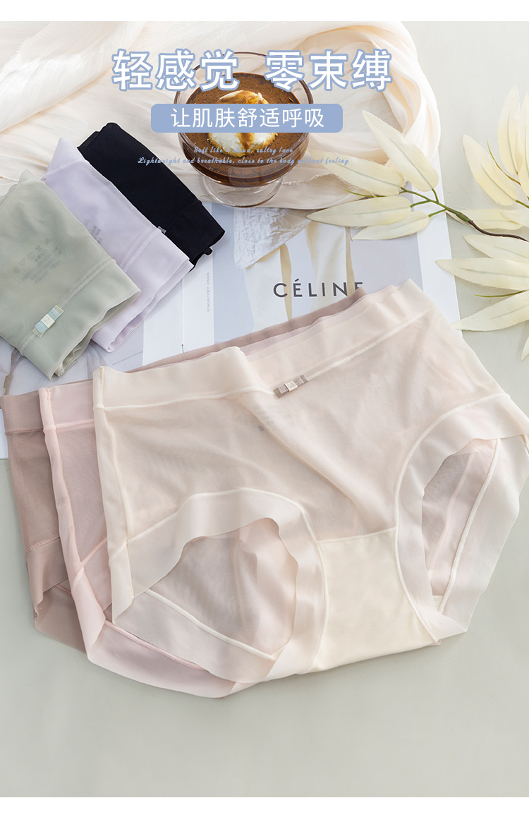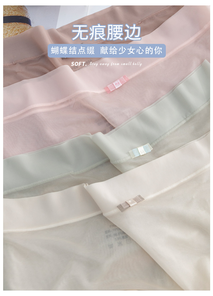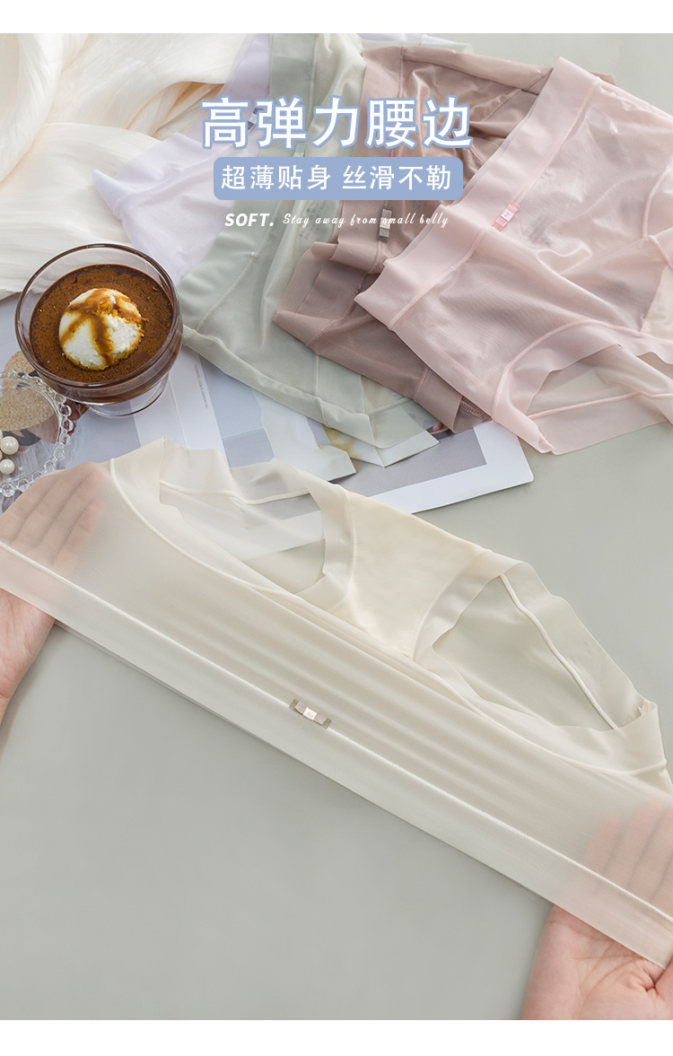 【3条装!】冰丝飘飞裸感冰氧内裤 超薄无痕女士内裤 蚕丝裆透气吸湿 轻柔舒适 高弹腰边 丝滑不勒