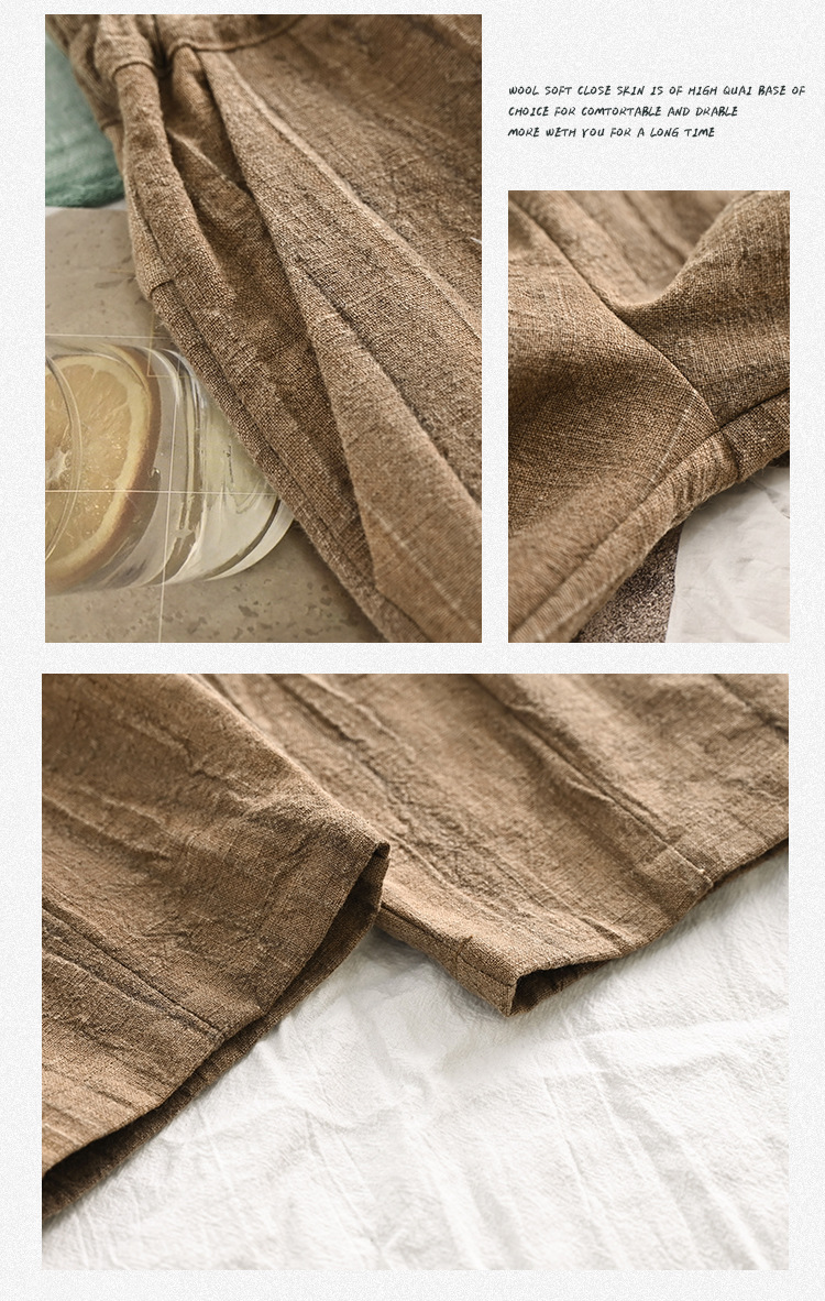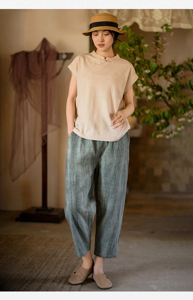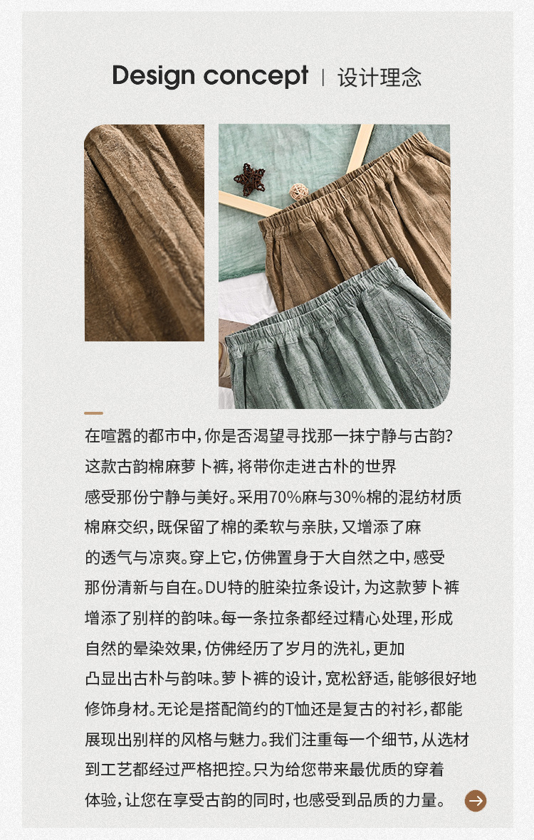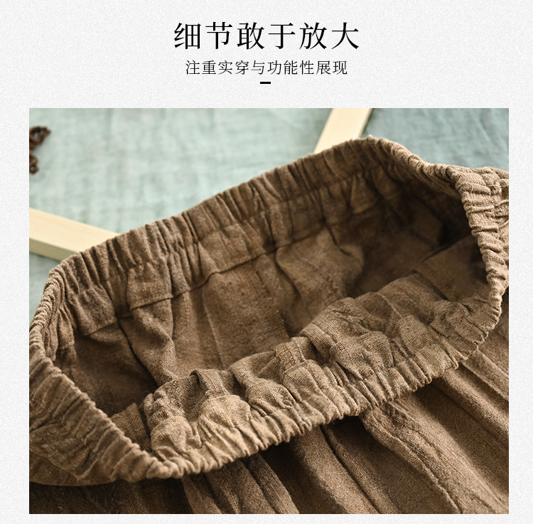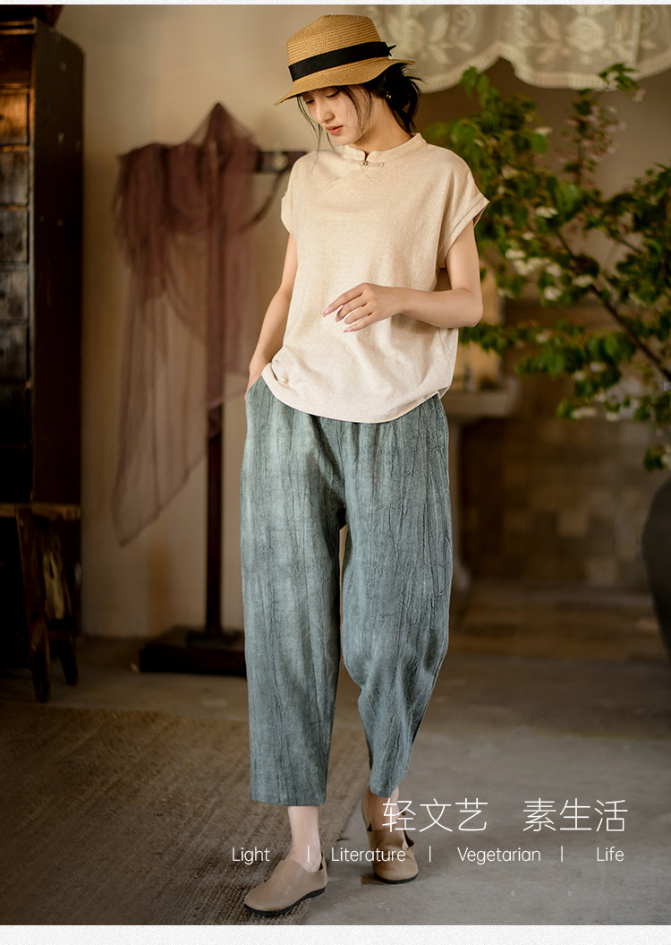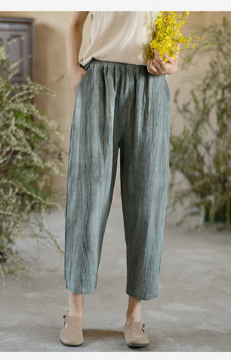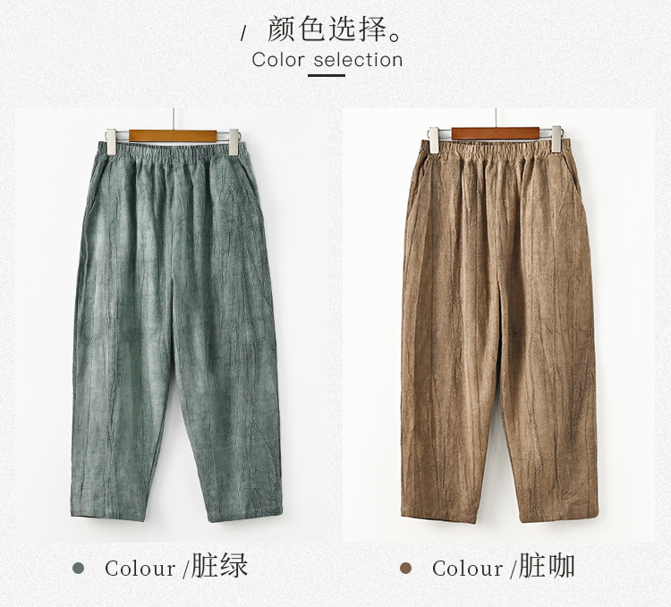 扎染百搭休闲裤,新中式复古做旧棉麻裤子QM-6324