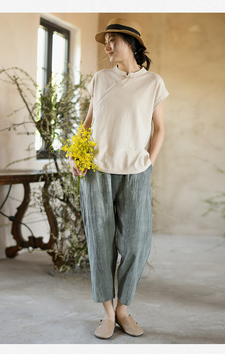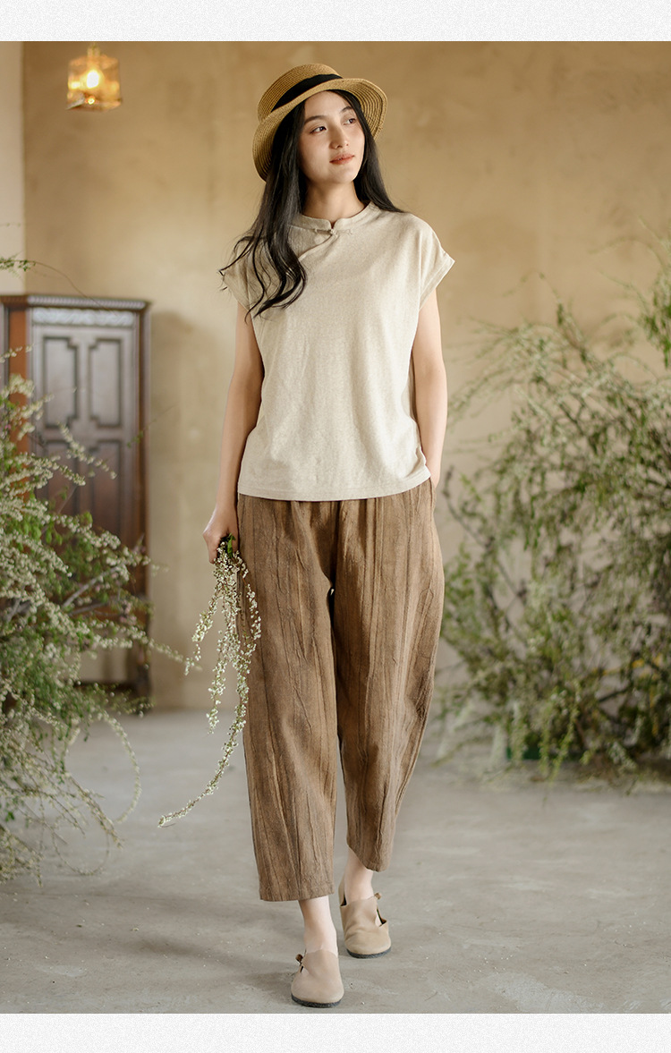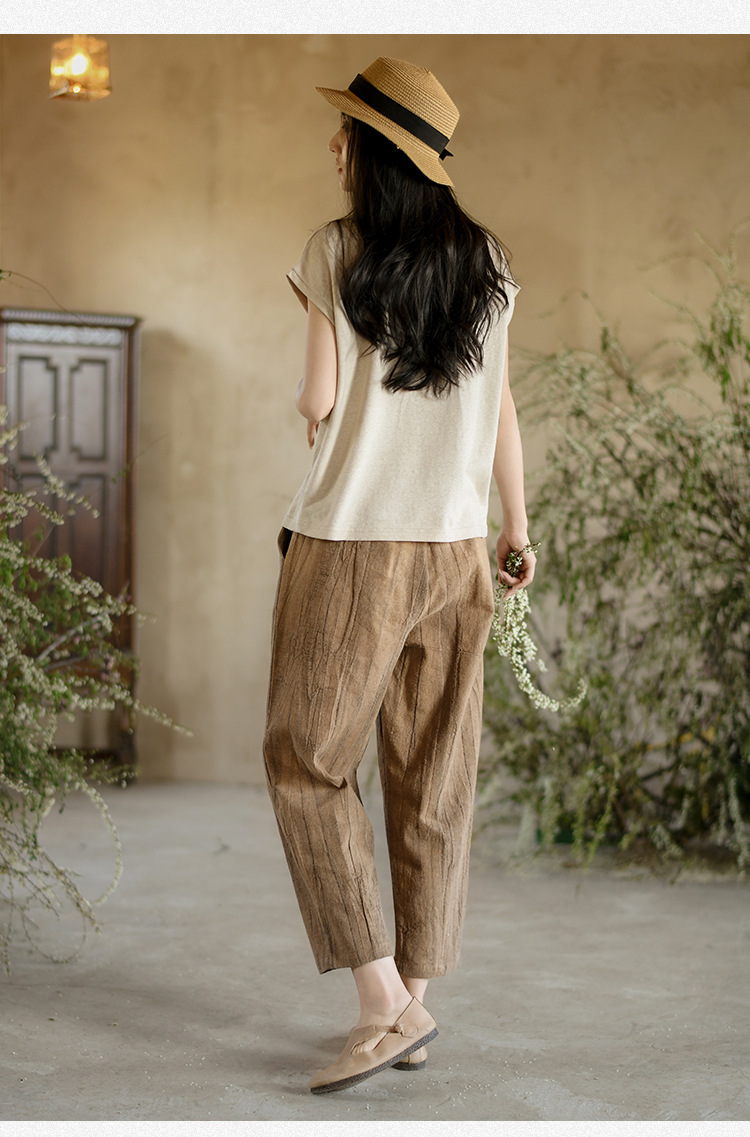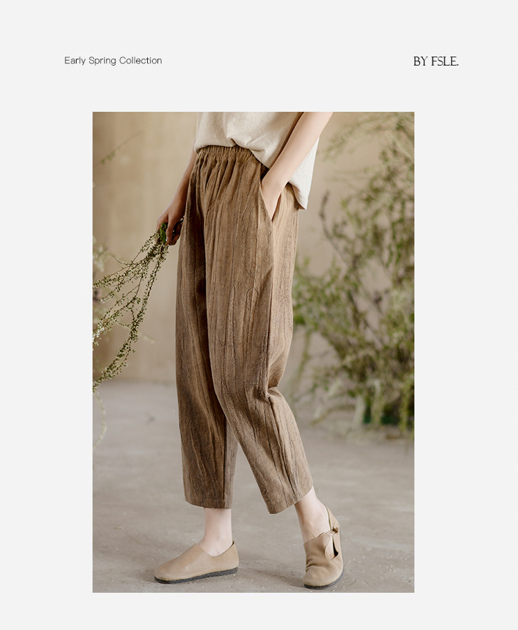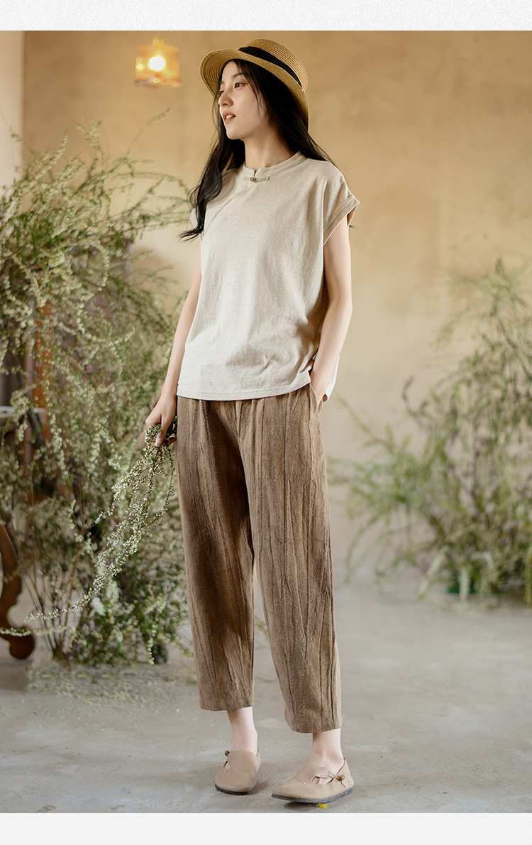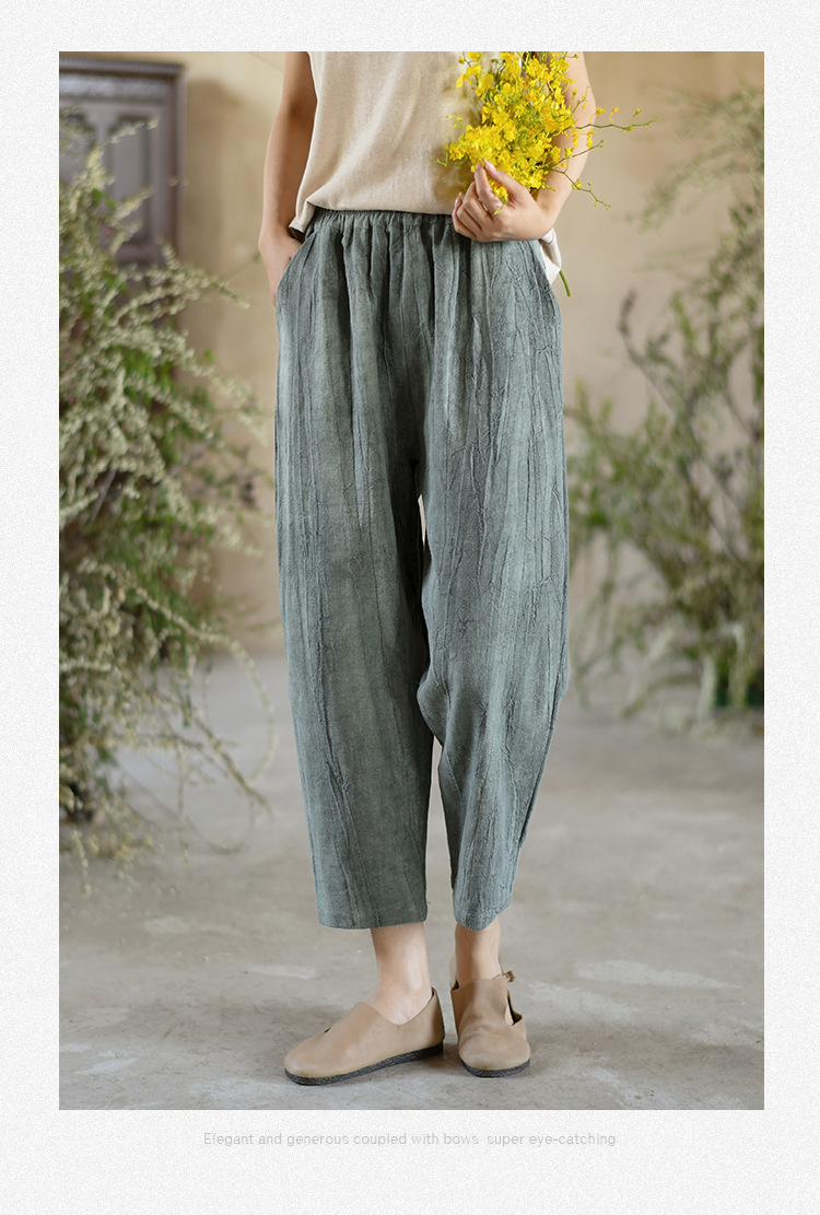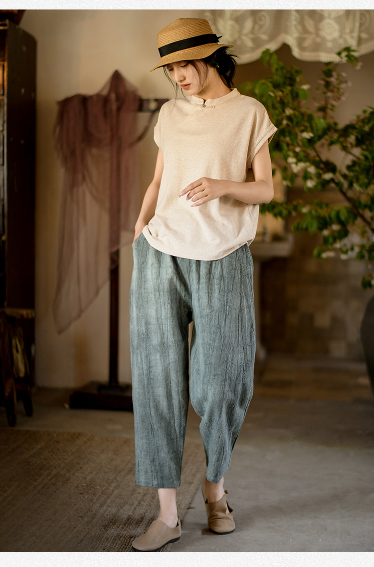 扎染百搭休闲裤,新中式复古做旧棉麻裤子QM-6324