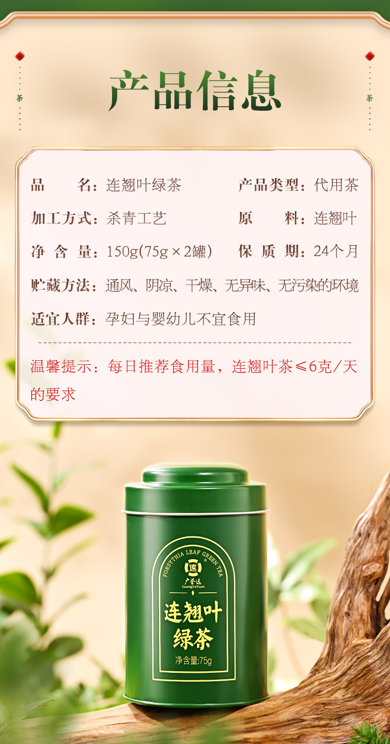 广誉远 连翘叶绿茶礼盒装、连翘叶红茶礼盒装 可选礼盒送礼佳品75g*2罐 /盒