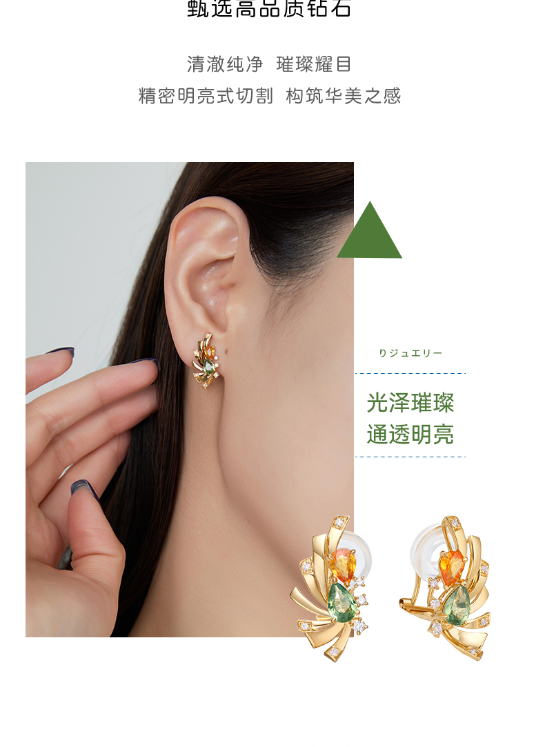 【挚友限定】菱形Candy两戴-18k金碧玺耳夹