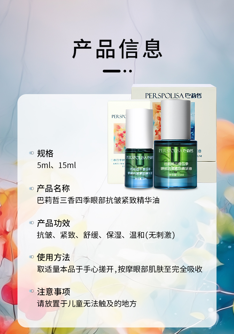 巴莉哲三香四季眼部紧致精华油 滋润紧致KAN皱去黑眼圈暗沉