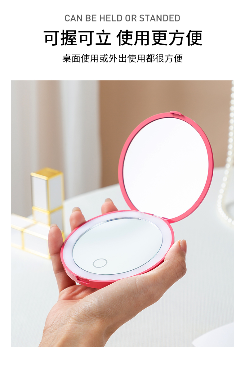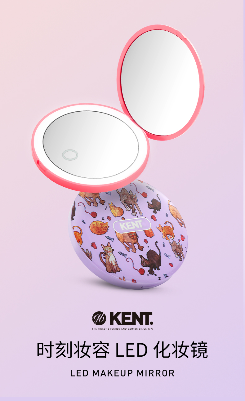 【花痴小姐私物分享】自然柔光LED化妆镜+同款精美发梳 英国KENT时刻妆容王室yu用品牌 三档灯光调节早晚细节护肤化妆 便携小巧外出携带