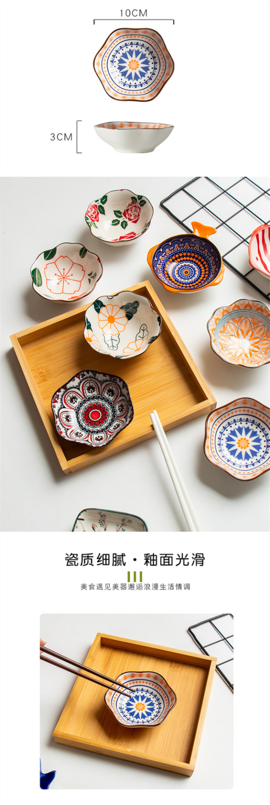 1、经过1300度高温烧制而成,具有良好的耐高温,耐热性,陶瓷材质,环保无毒易清洗2、无铅无镉,健康首选, 3、可用于洗碗机,消毒柜,烤箱,微波炉等。 4、各种造型的碟子随机发货,让您带着期待,开出惊喜。5、夏天到了,各种酸甜苦辣的调味料搭配着我们的生活,各种造型的小碟让我们的夏天色彩斑斓。
