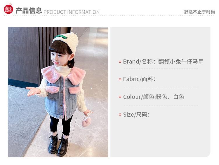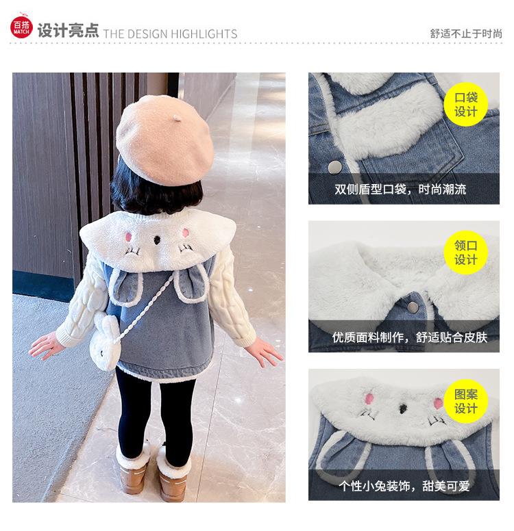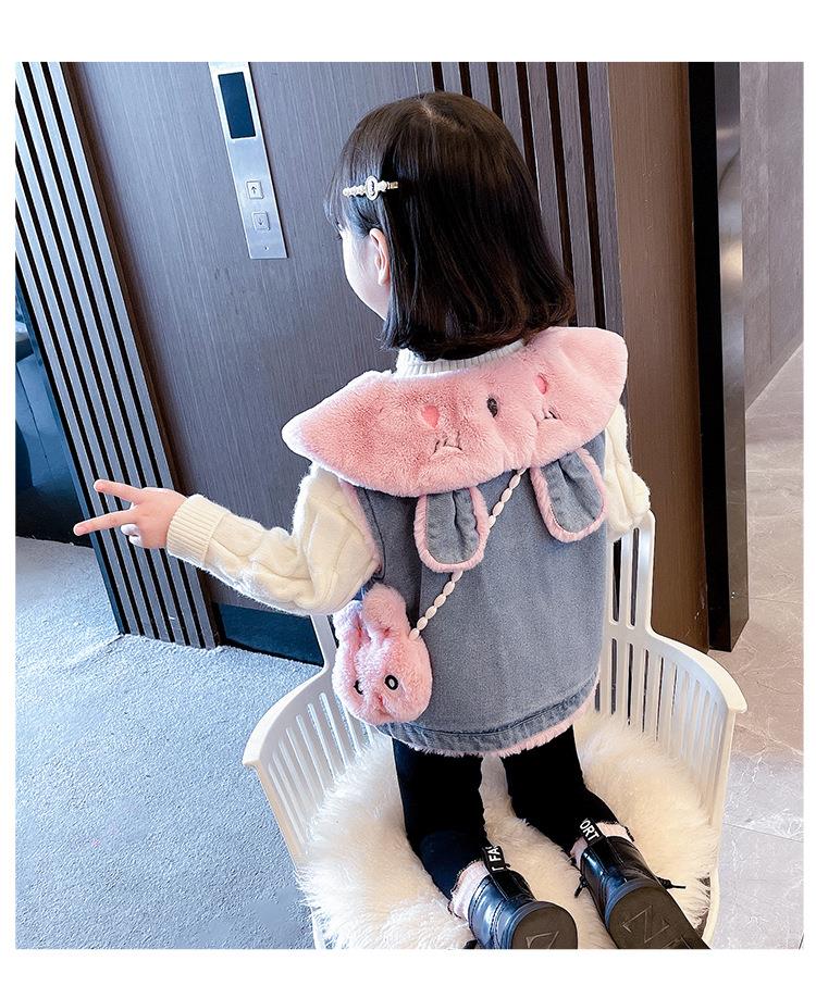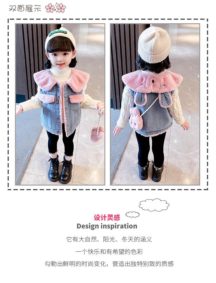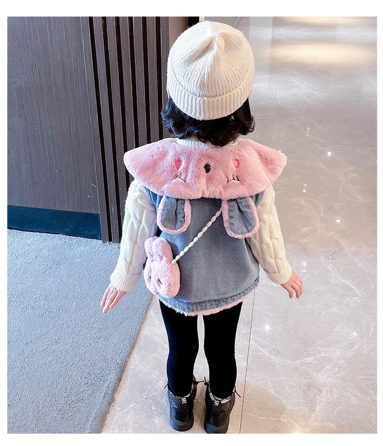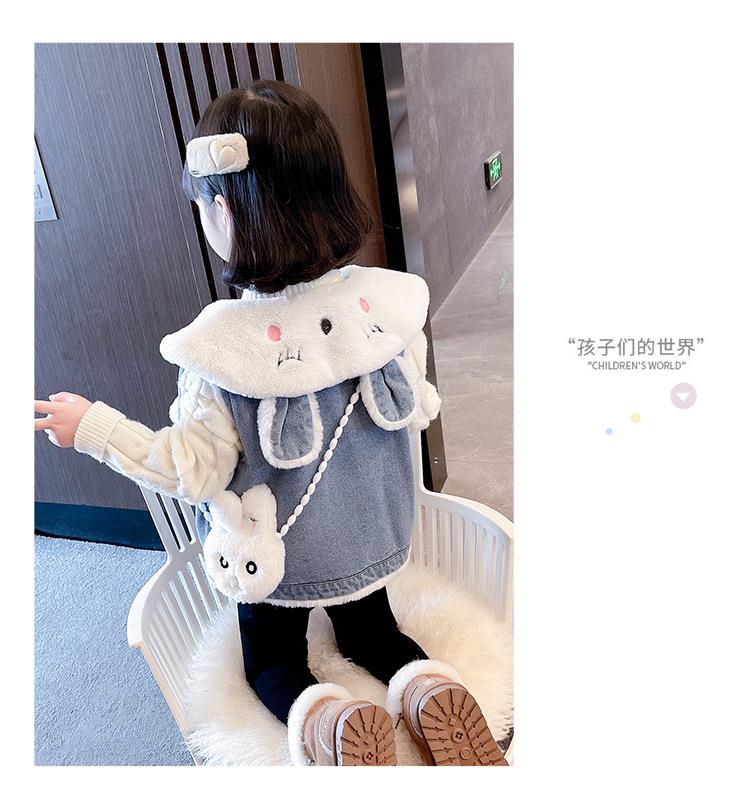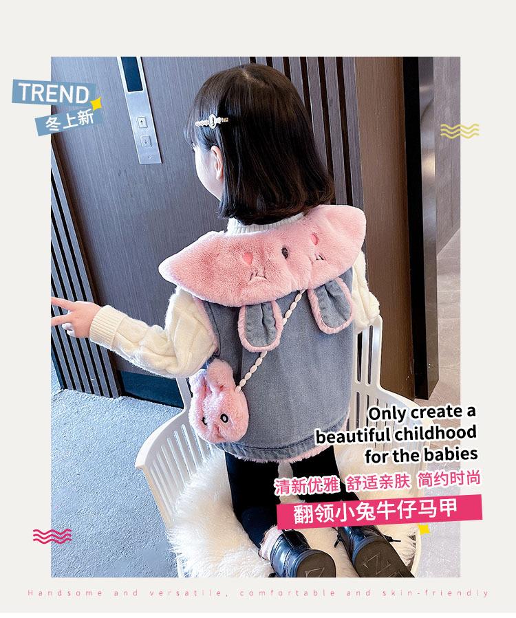 2023秋冬新款儿童兔子牛仔马甲加厚保暖背心韩版洋气童装
