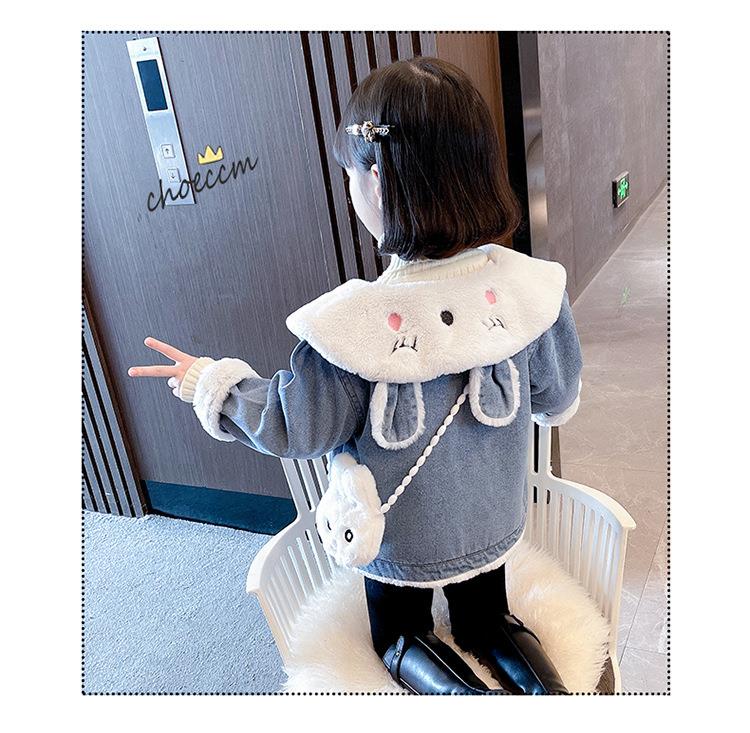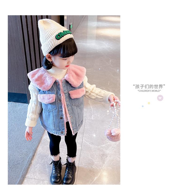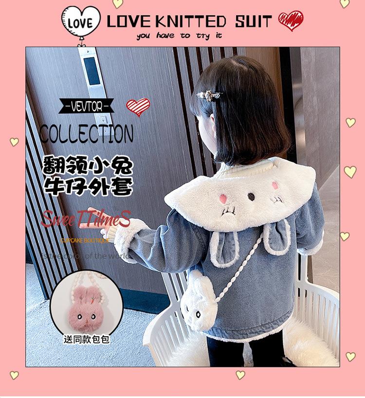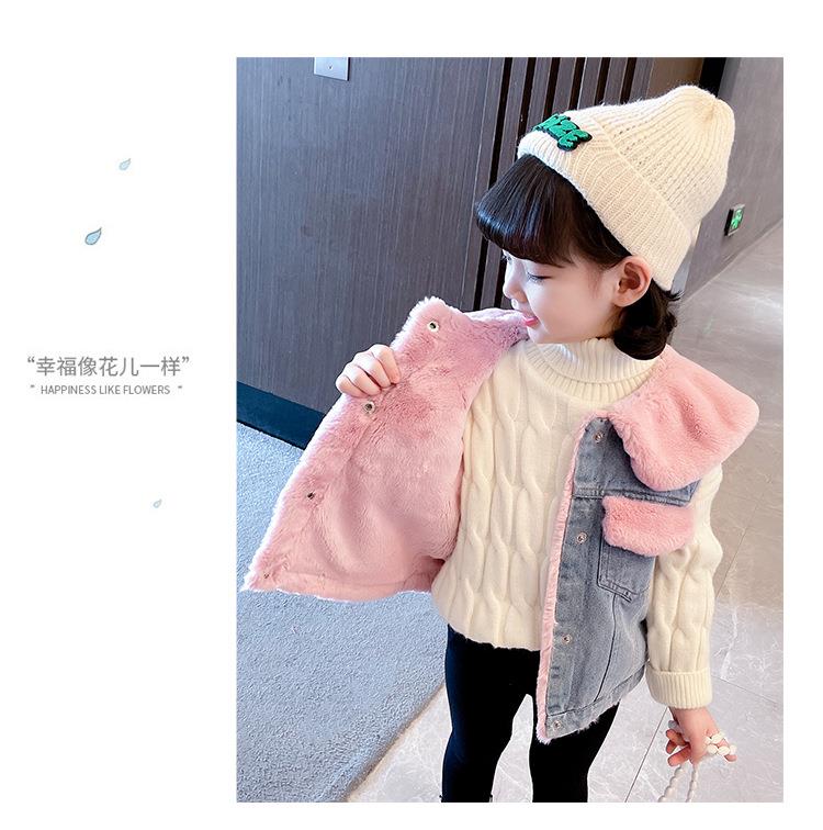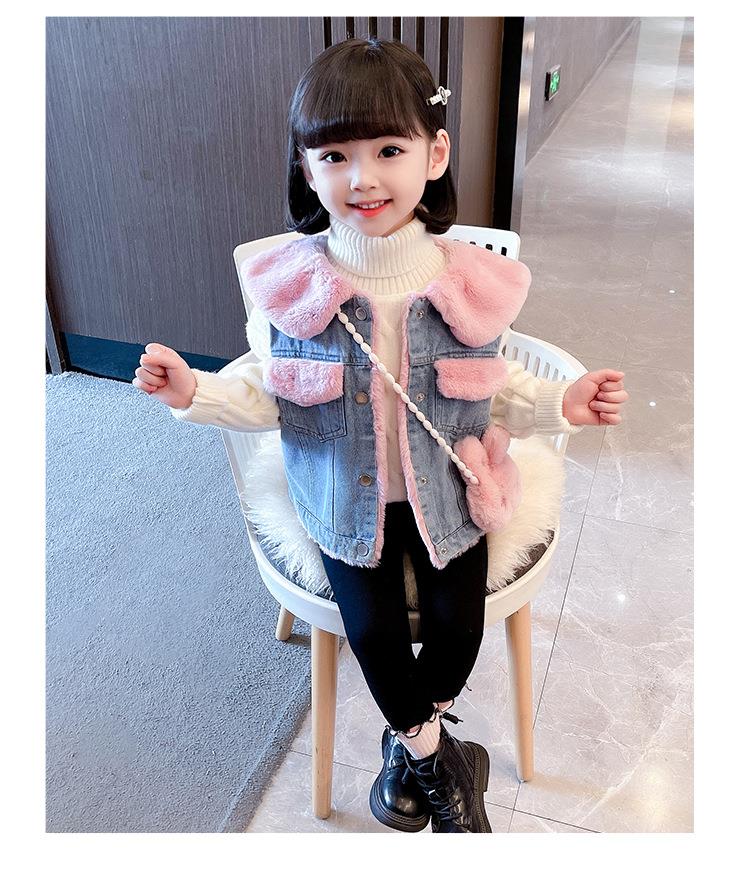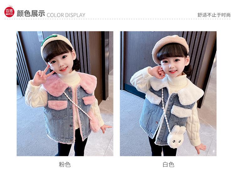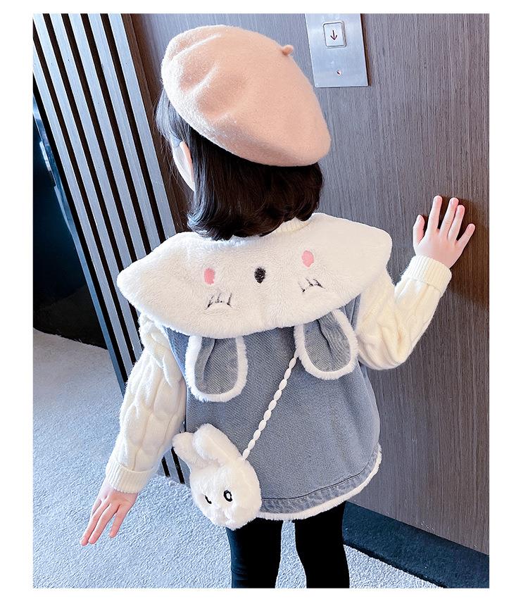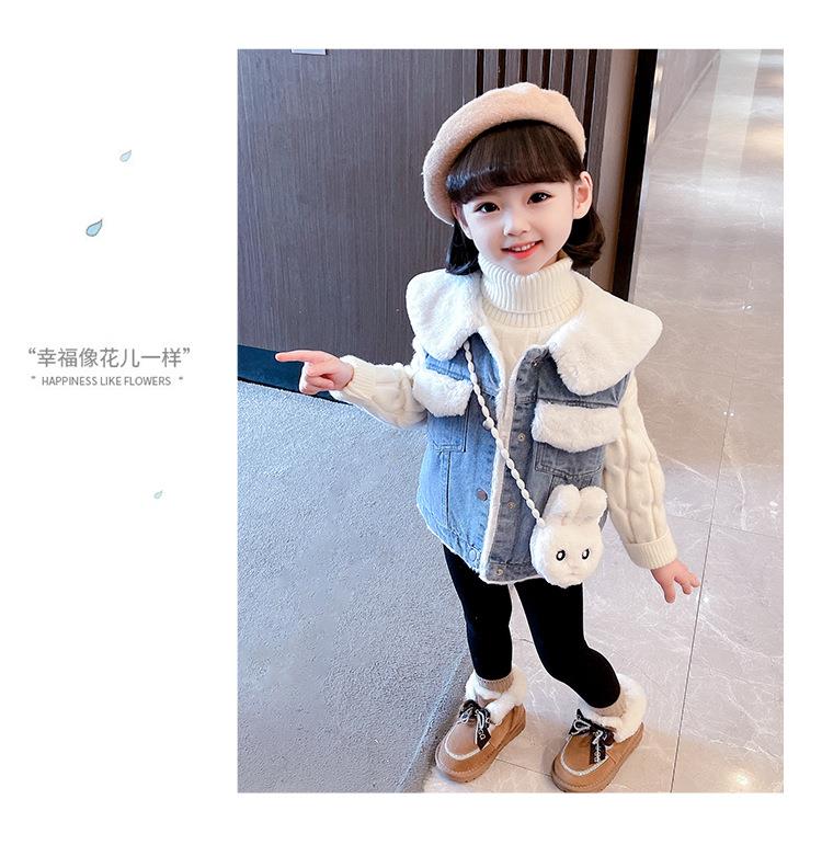 2023秋冬新款儿童兔子牛仔马甲加厚保暖背心韩版洋气童装