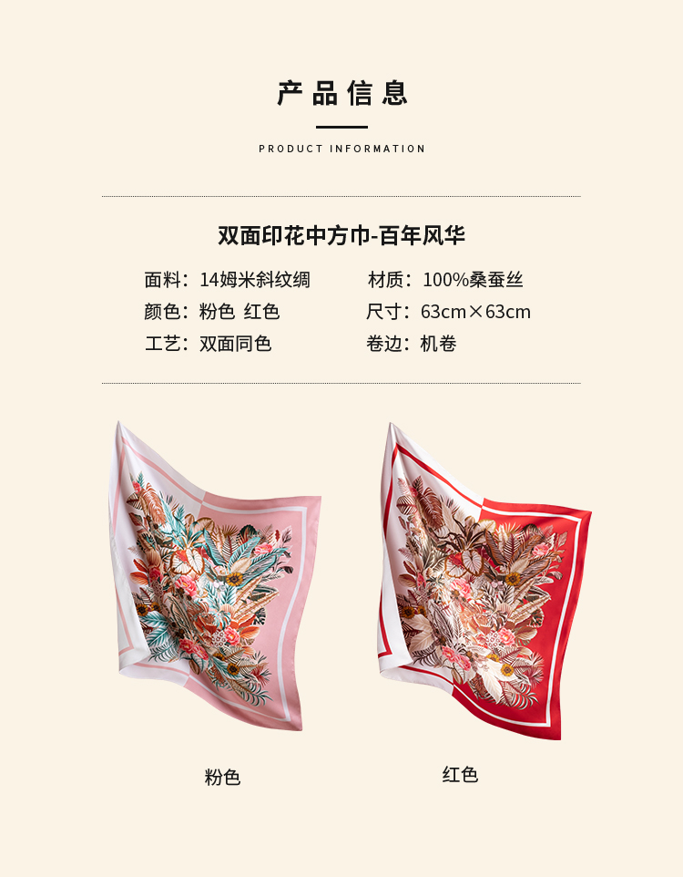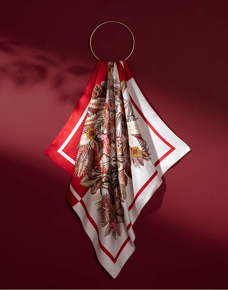 万事利“玉兰赋”63厘米双面印花真丝中方巾
