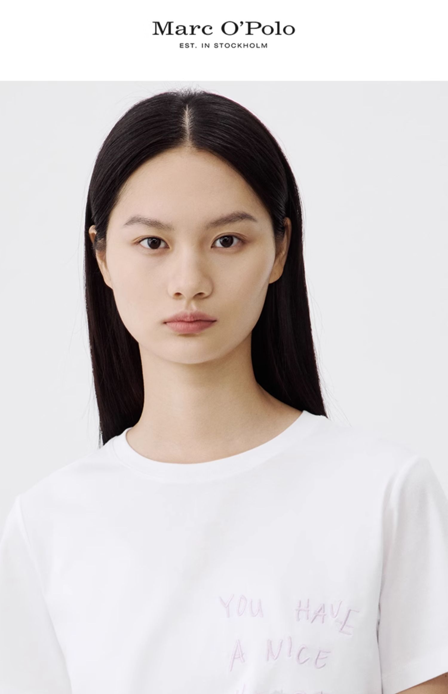 Marc O'Polo/MOP 秋季新款纯棉胸口绣花字母宽松短袖T恤女士
