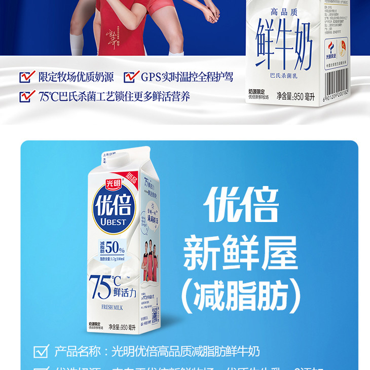 光明 优倍 减脂肪鲜奶 950ml 鲜牛奶