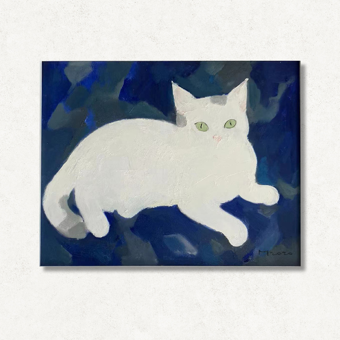 A16 孙洪敏《猫孩子》40*50CM 布面油画 手绘原作 已装框(白色木制)艺术家本人特供 仅有1张现货顺丰包邮