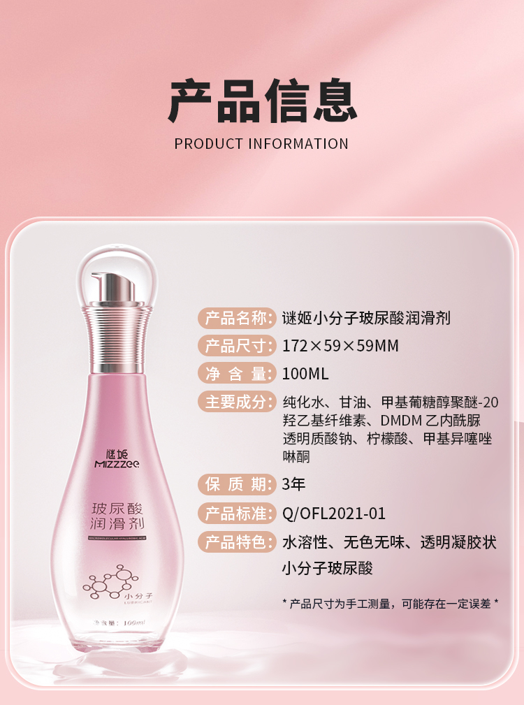 谜姬 润滑液水溶性免洗可舔人体润滑油男女士夫妻房事专用后庭肛门玻尿酸润滑剂私处精油成人情趣性用品 小分子玻尿酸100ml