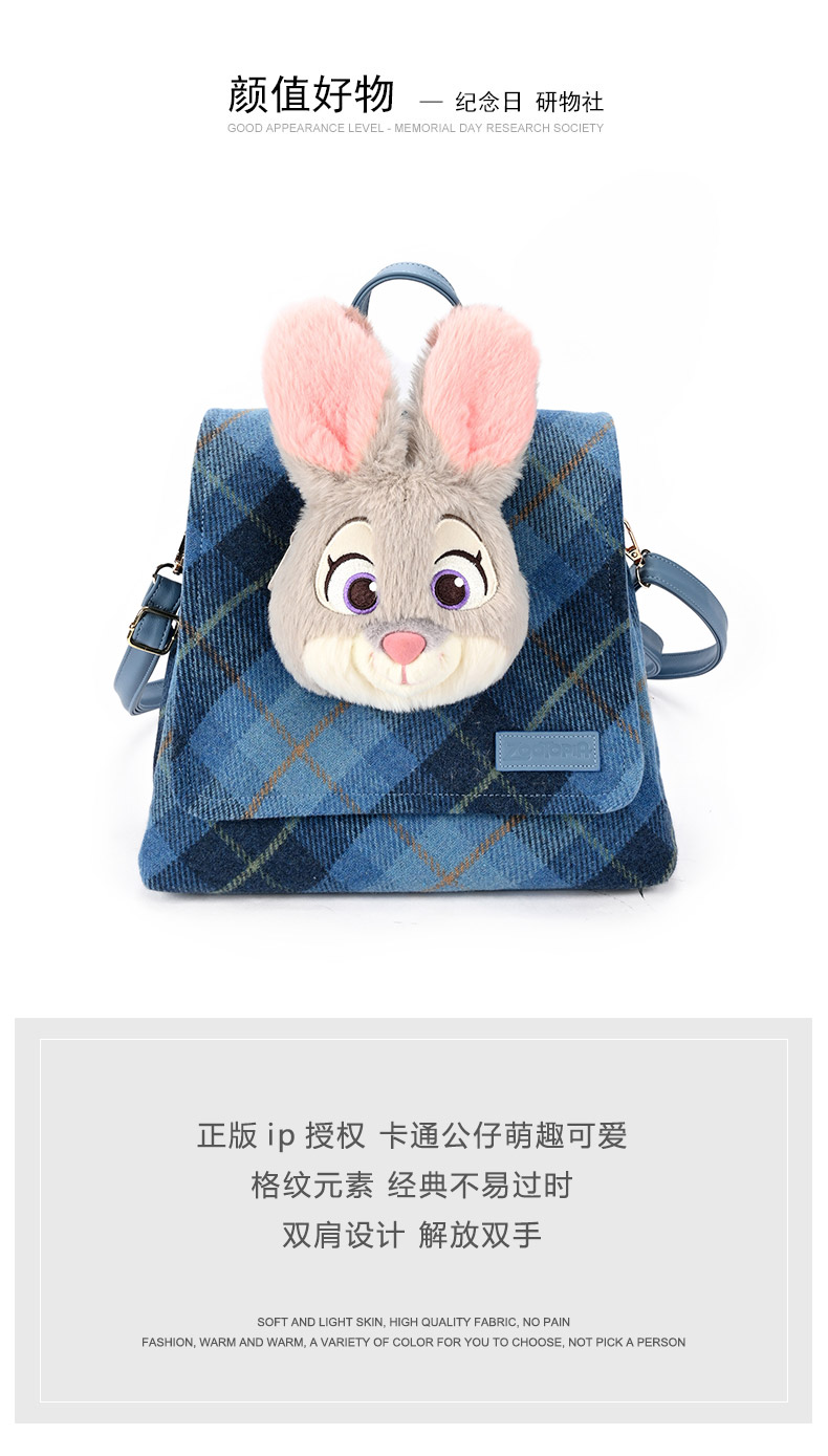 朱迪尼克时光格律斜蓝色格纹挎包米奇毛绒双肩包尼克双肩包-纪念日百货门店同款167748432
