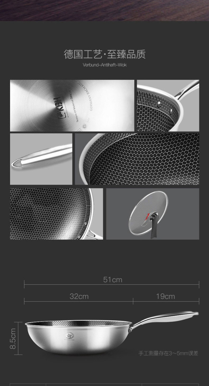 【中餐厅同款】康巴赫第五代蜂窝不粘锅炒锅不锈钢炒菜锅家用