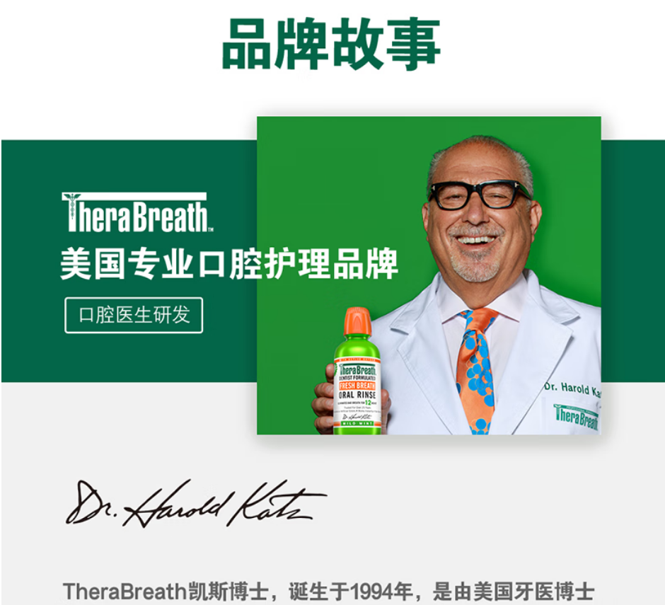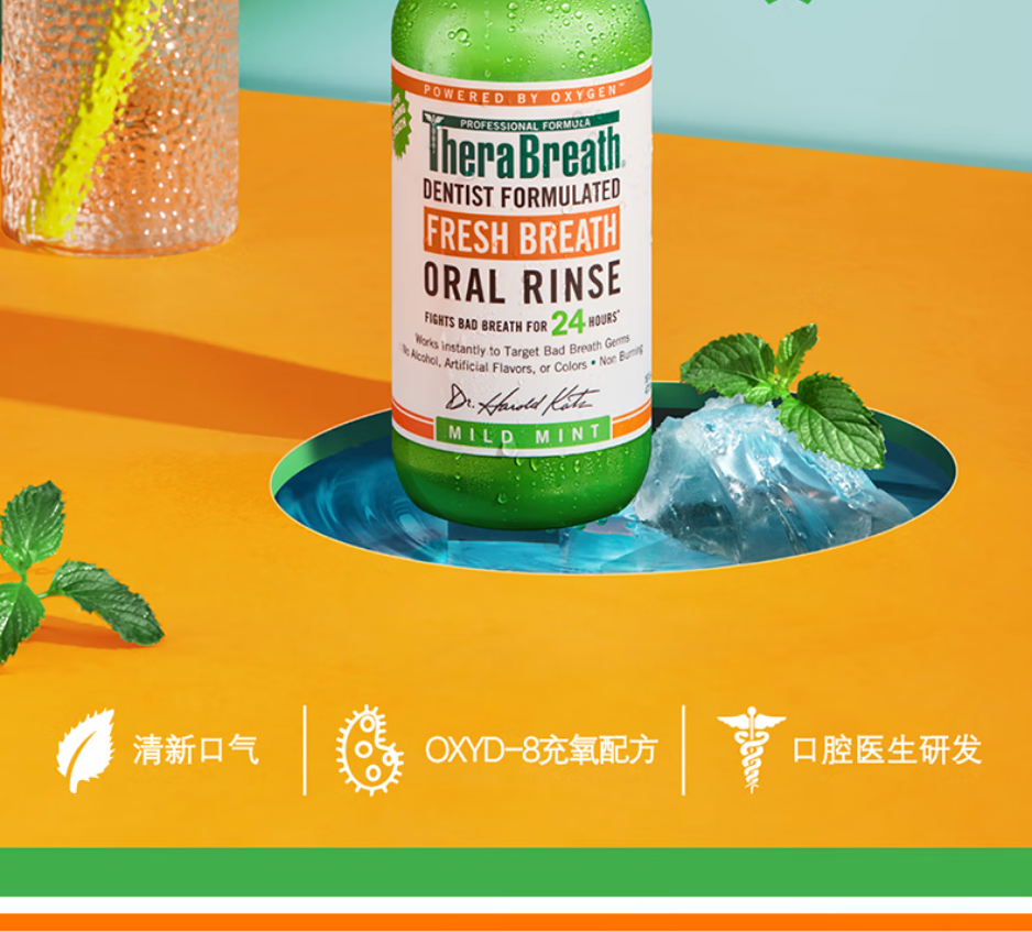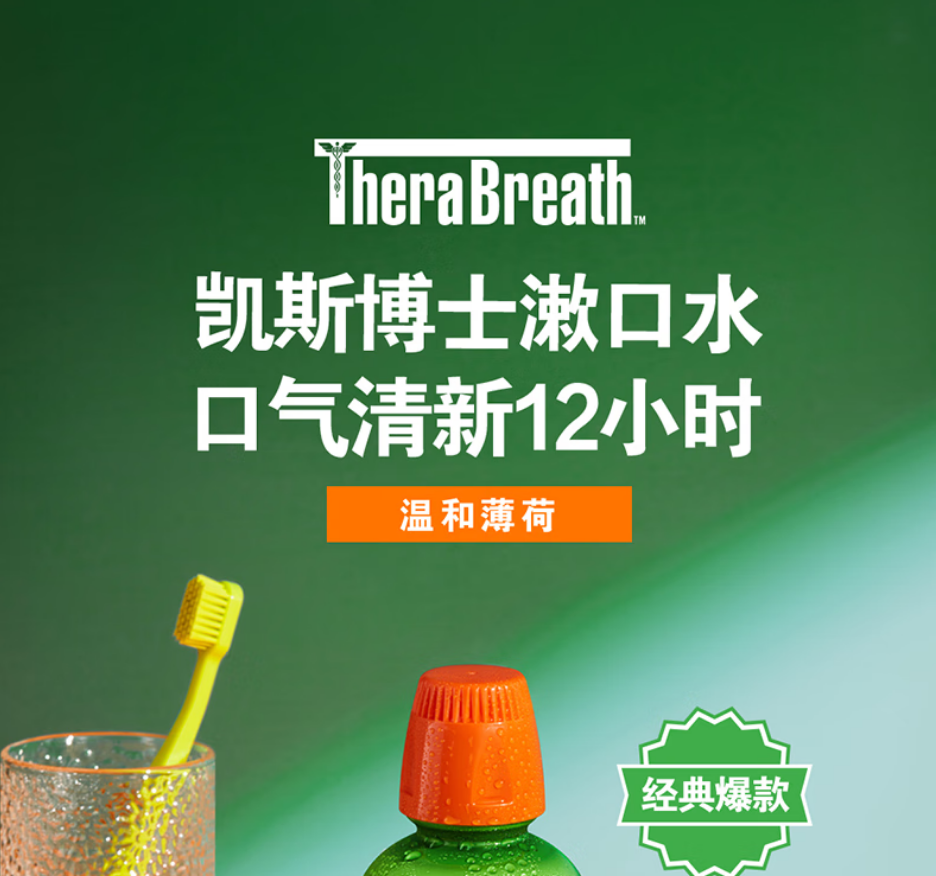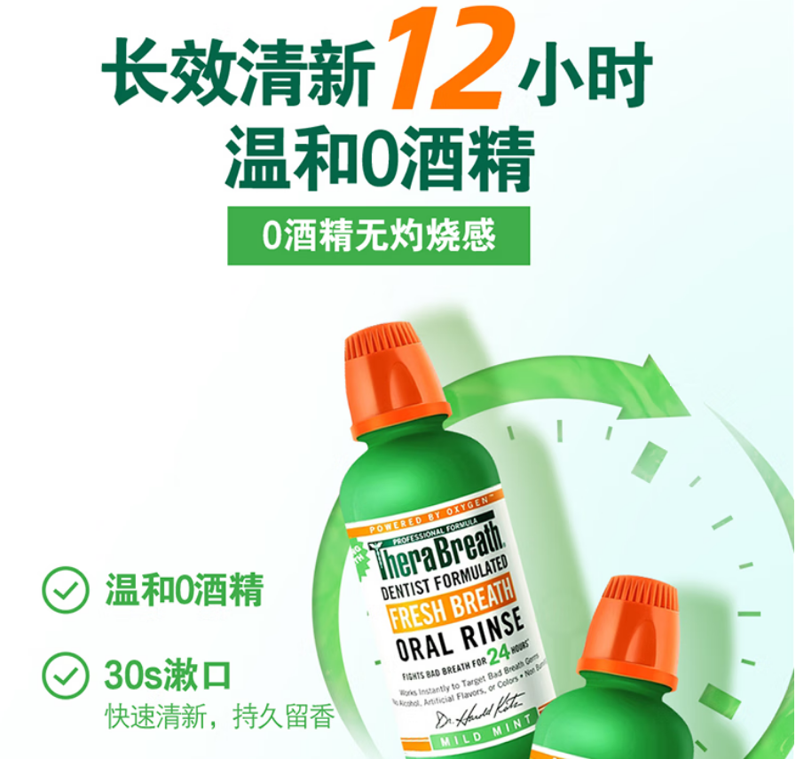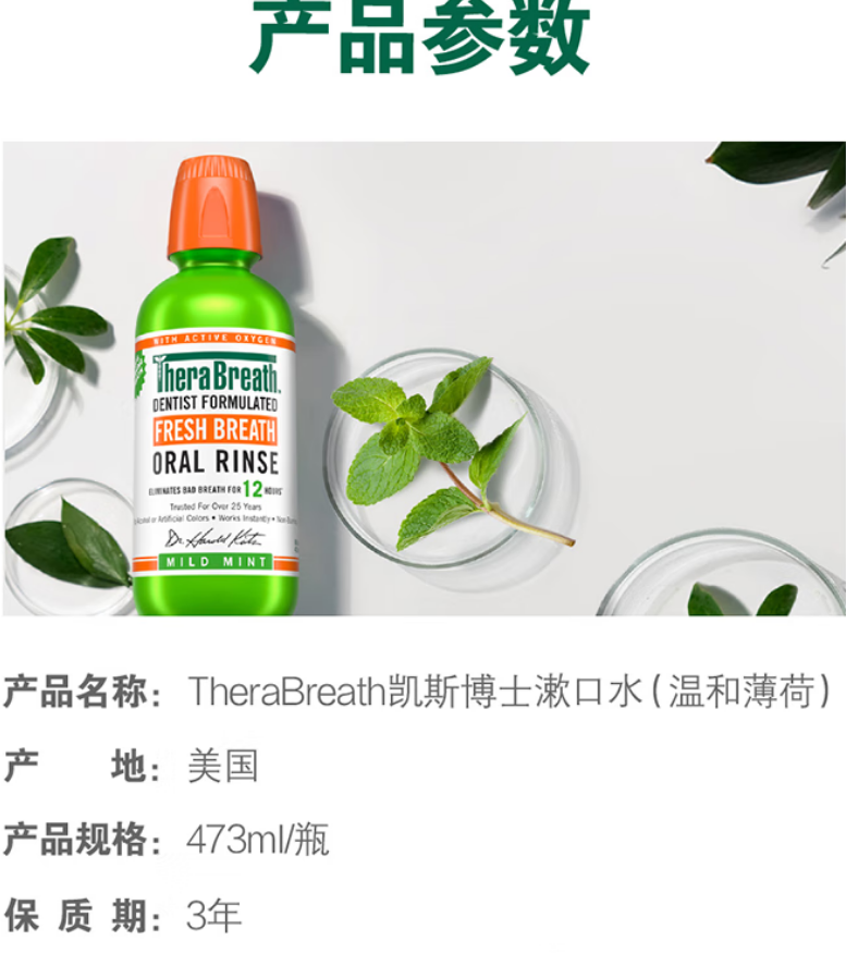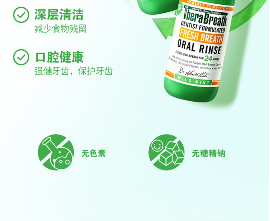 【拍2再减5元】TheraBreath凯斯博士漱口水 原味标准型(绿色)473ml 美国充氧配方 温和清新【exp2024.6~9随机发】