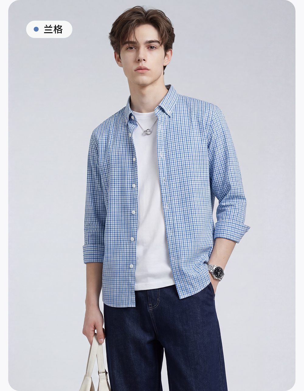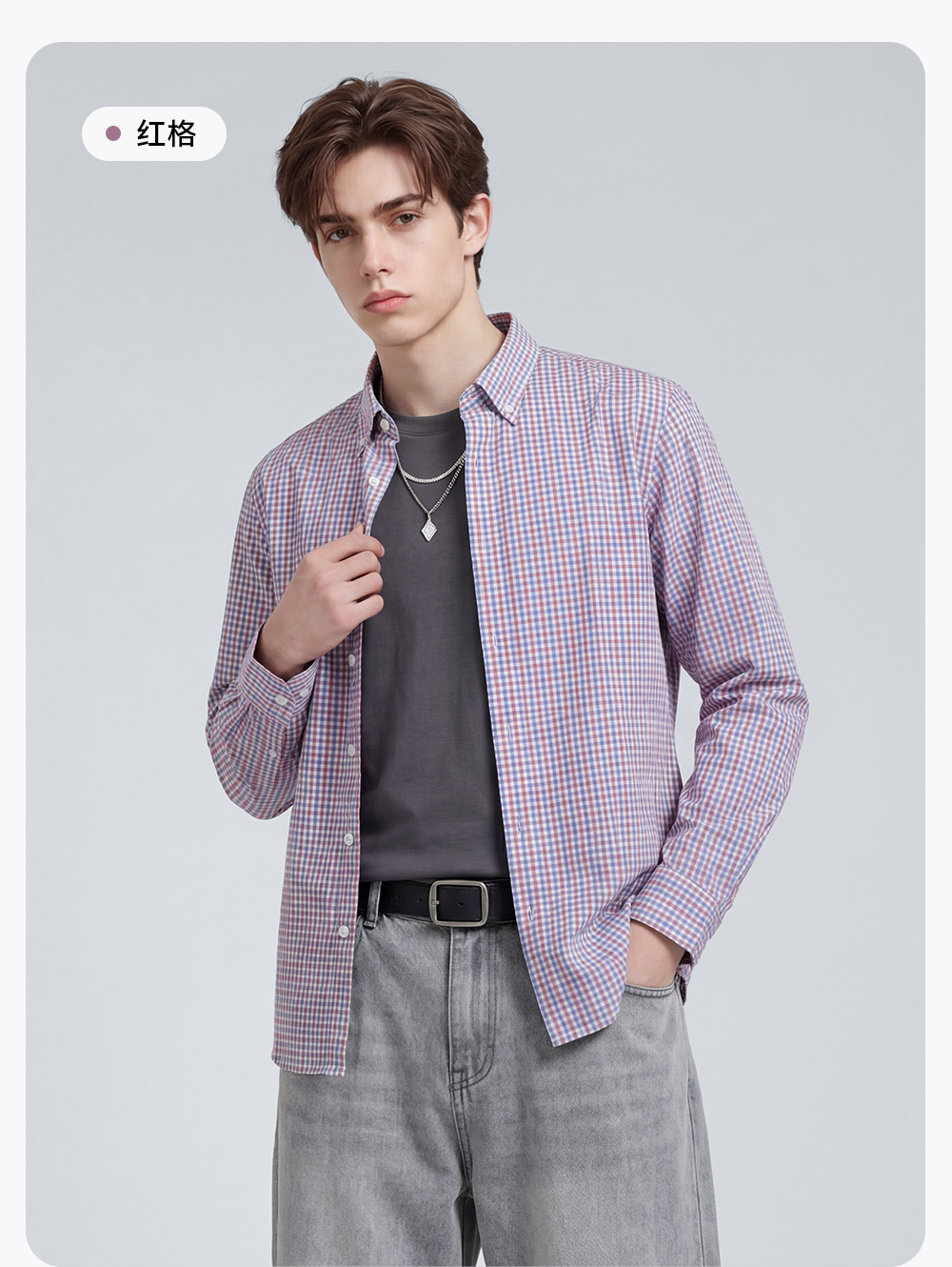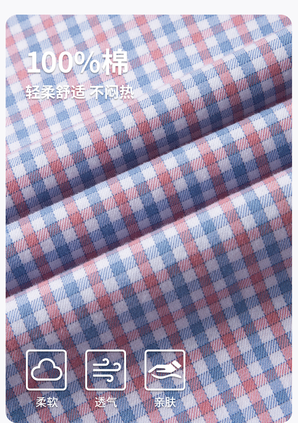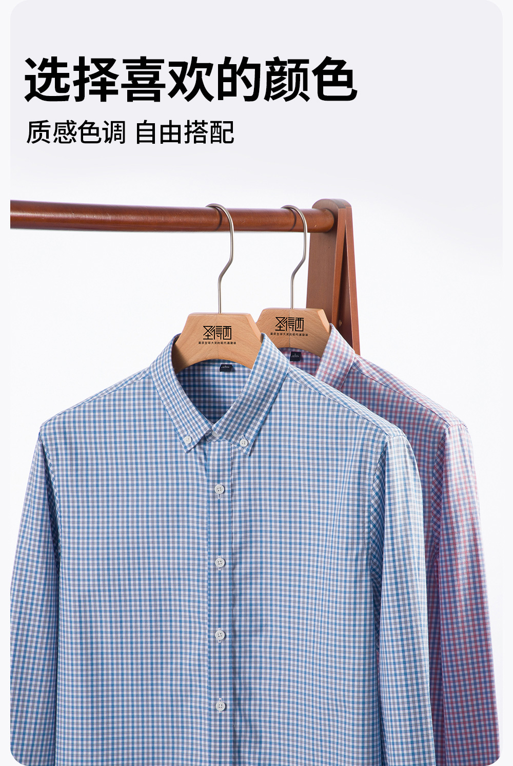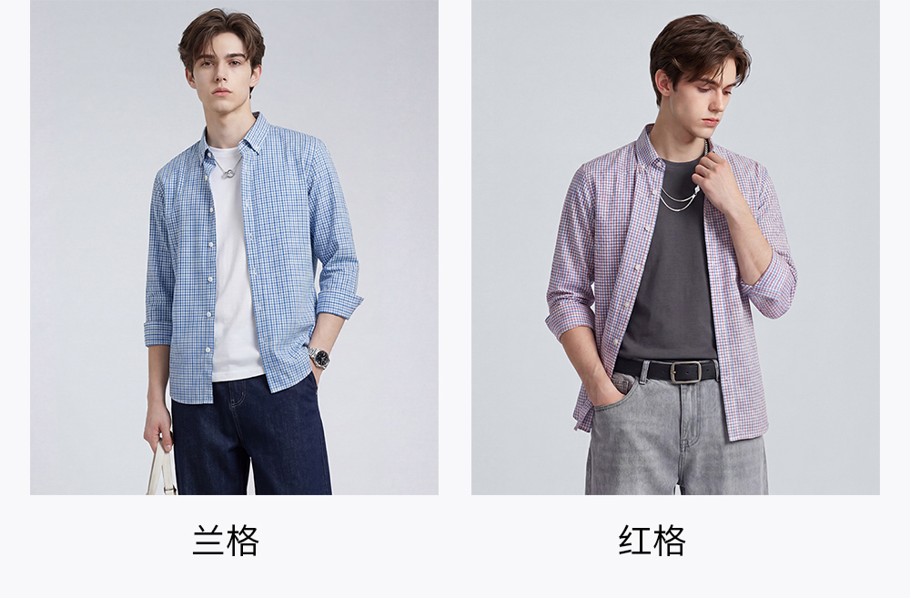 【100%棉】圣得西男士长袖衬衫2026新款春季亲肤透气商务休闲格子衫