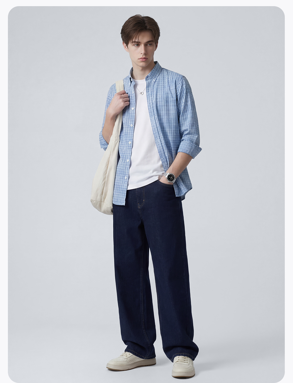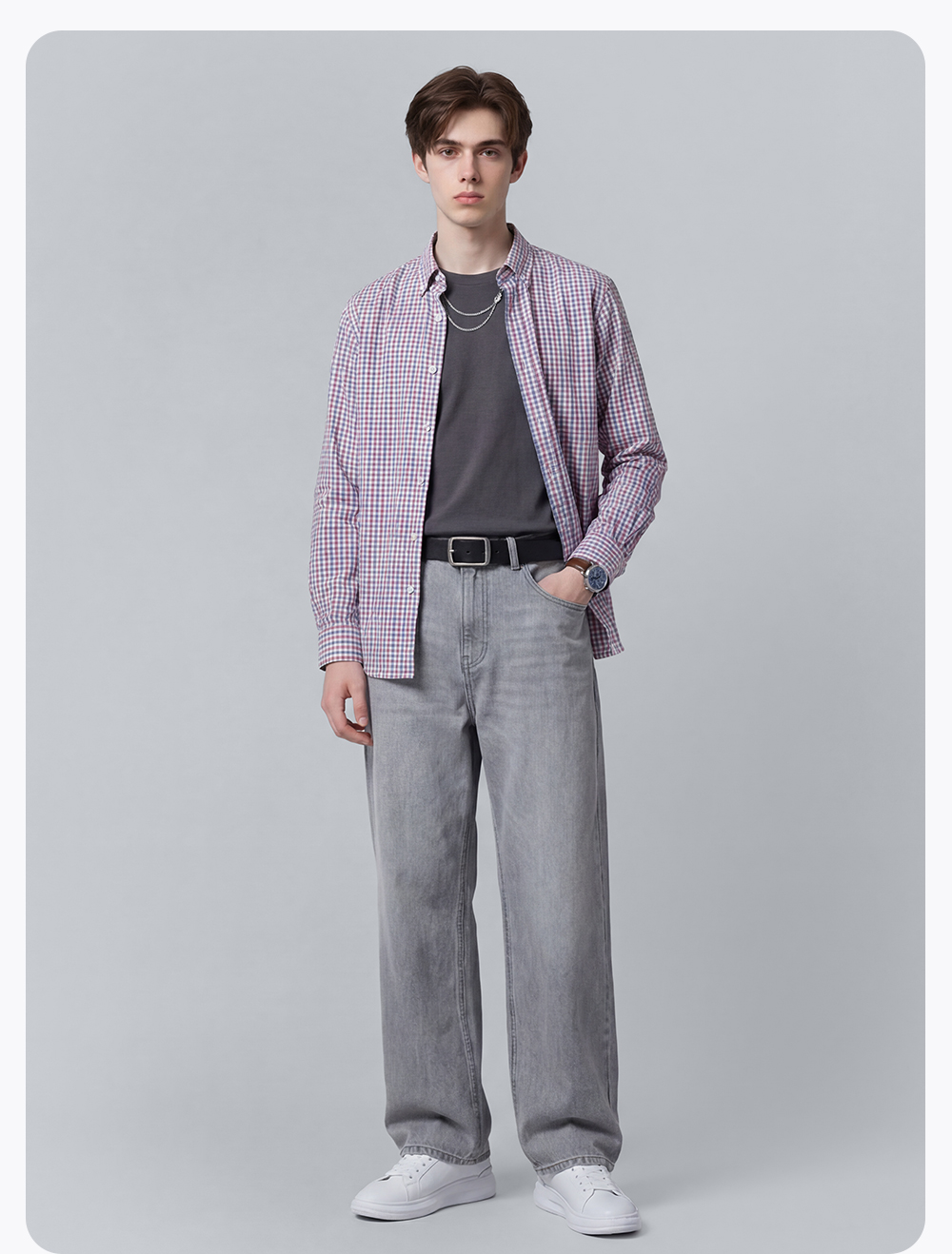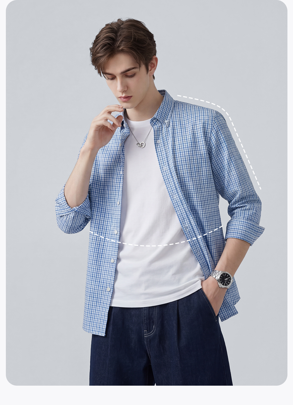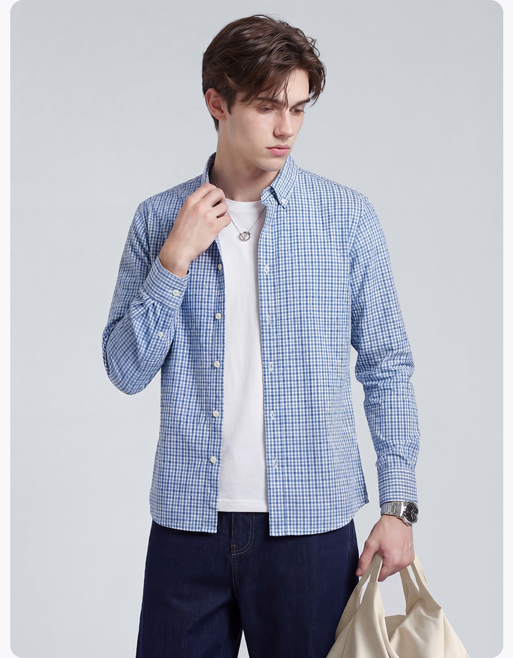 【100%棉】圣得西男士长袖衬衫2026新款春季亲肤透气商务休闲格子衫