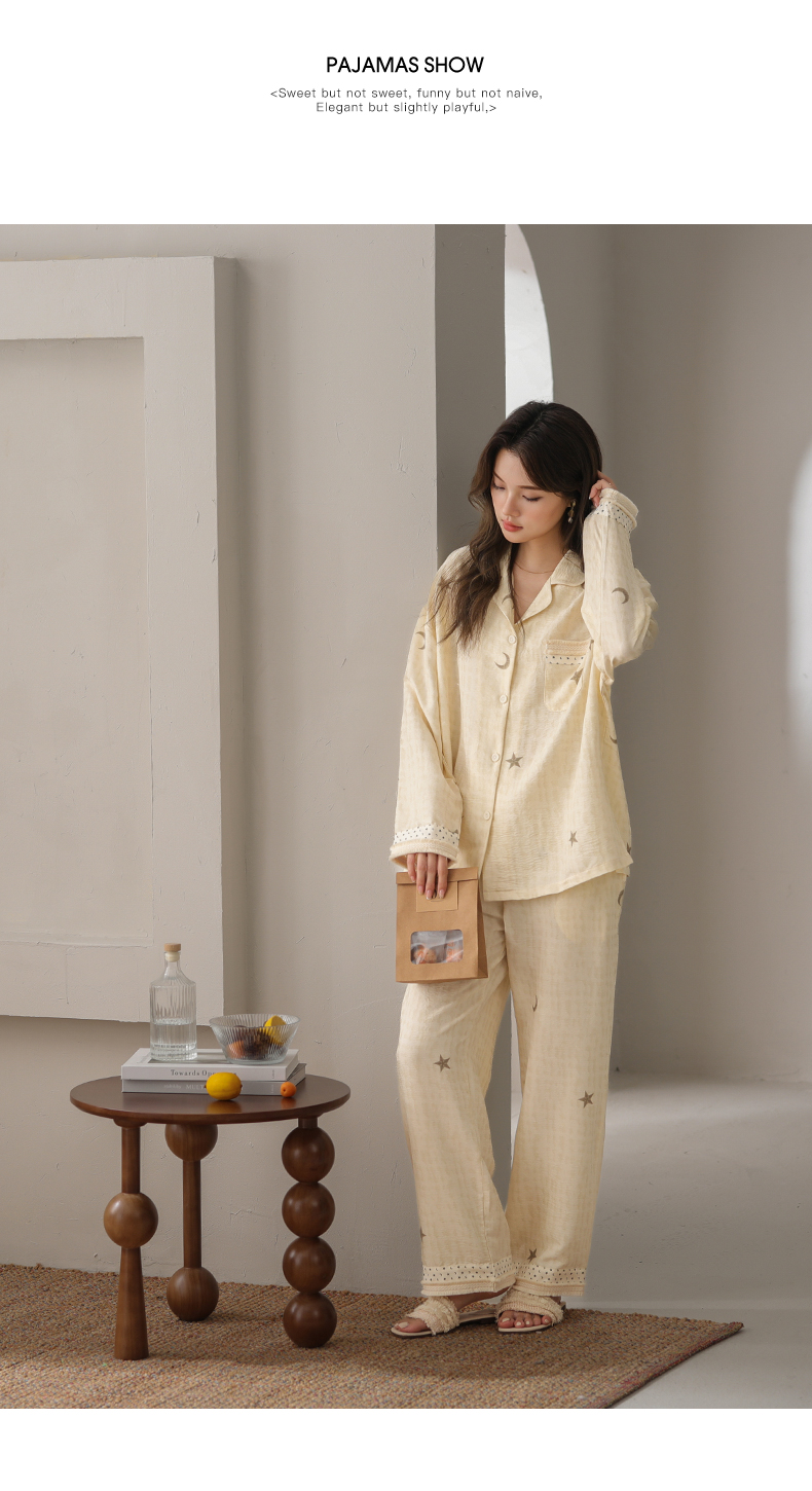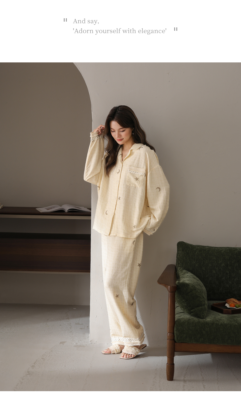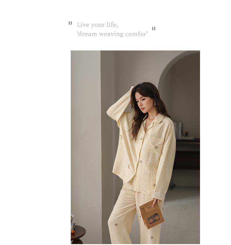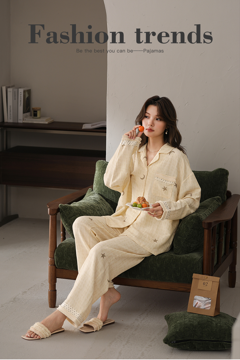 可人儿小众设计师新款奥力绵女士睡衣春秋长袖时尚可外出家居服