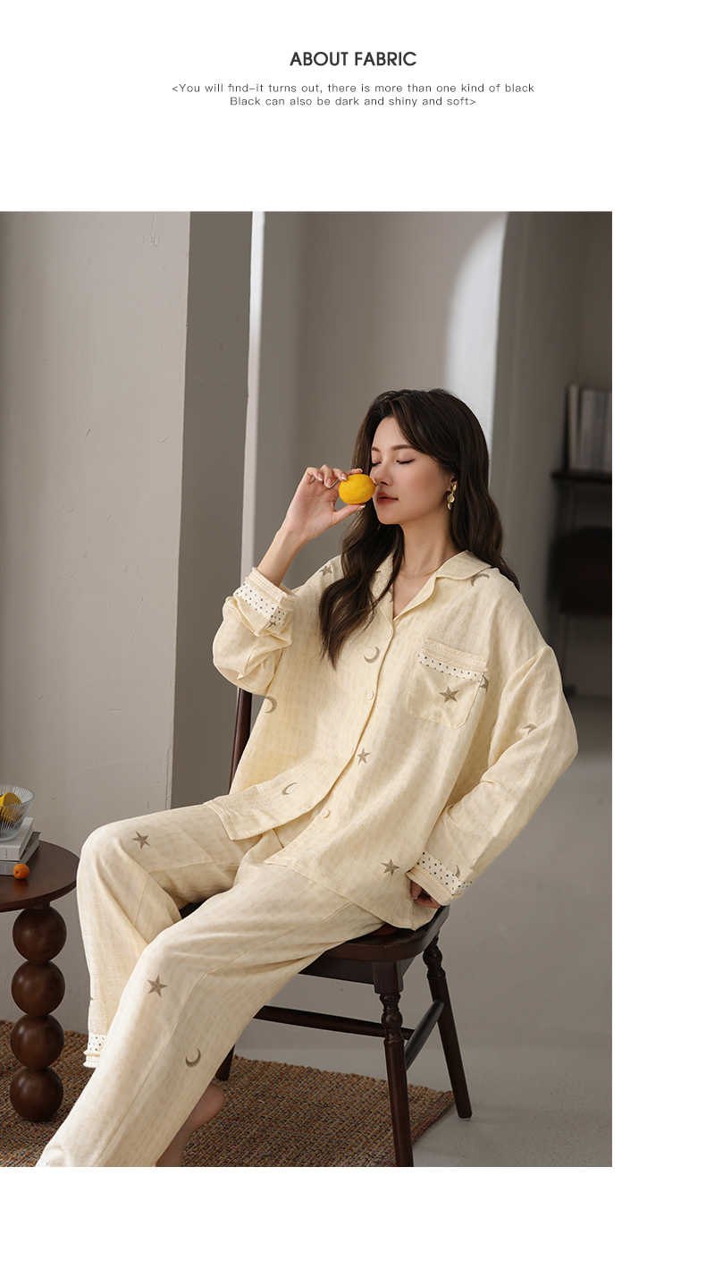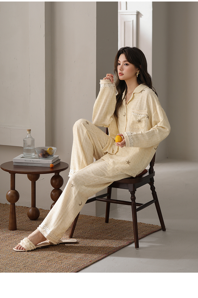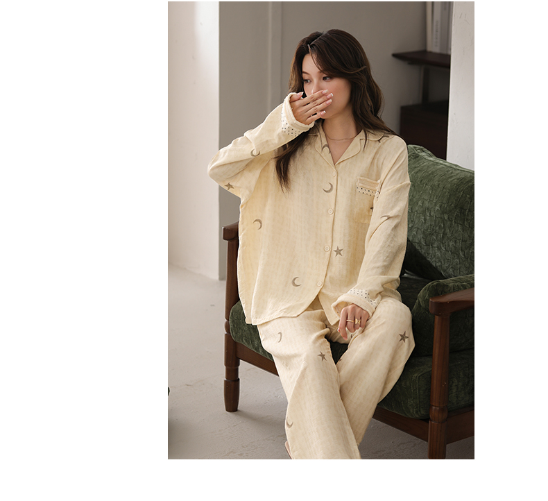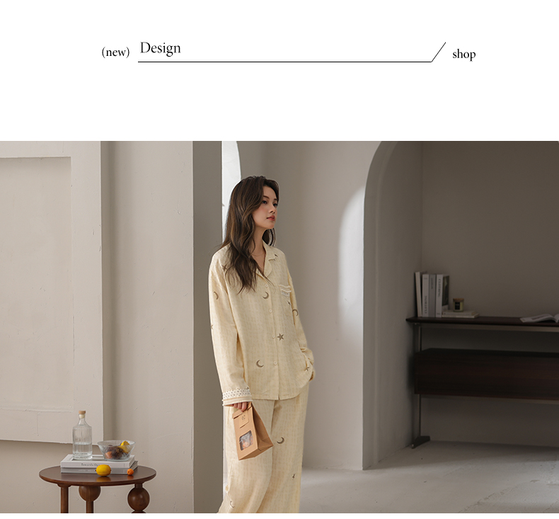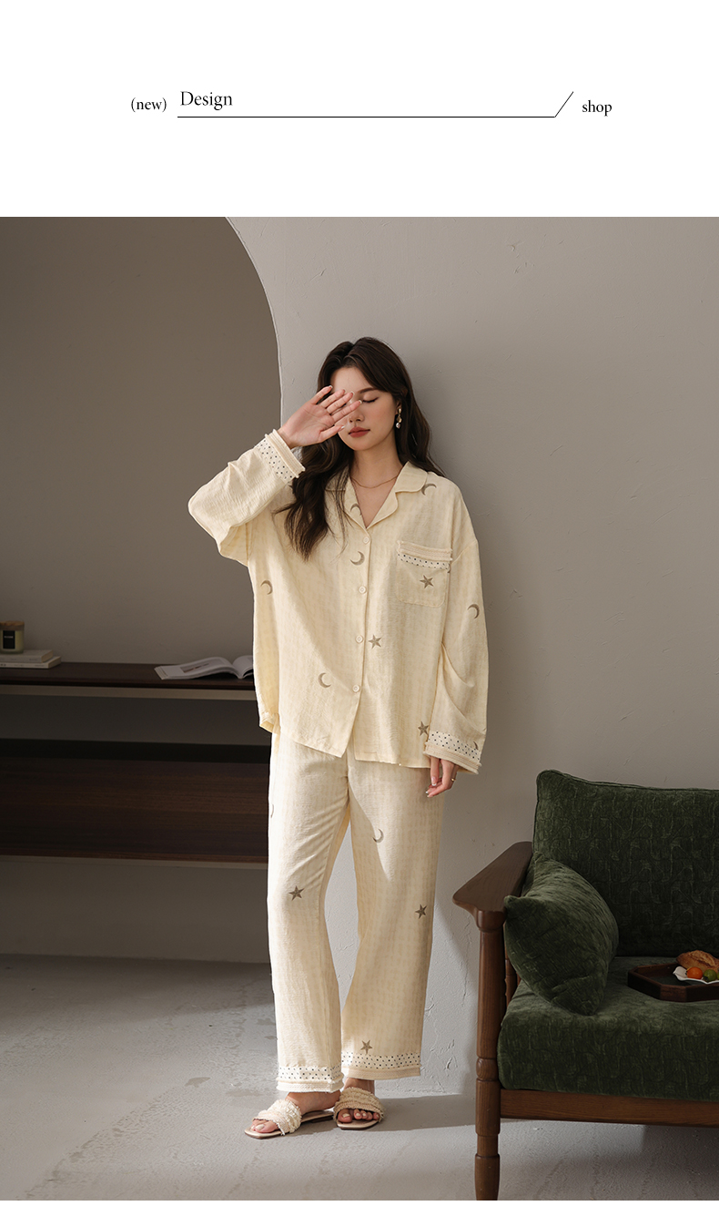 可人儿小众设计师新款奥力绵女士睡衣春秋长袖时尚可外出家居服