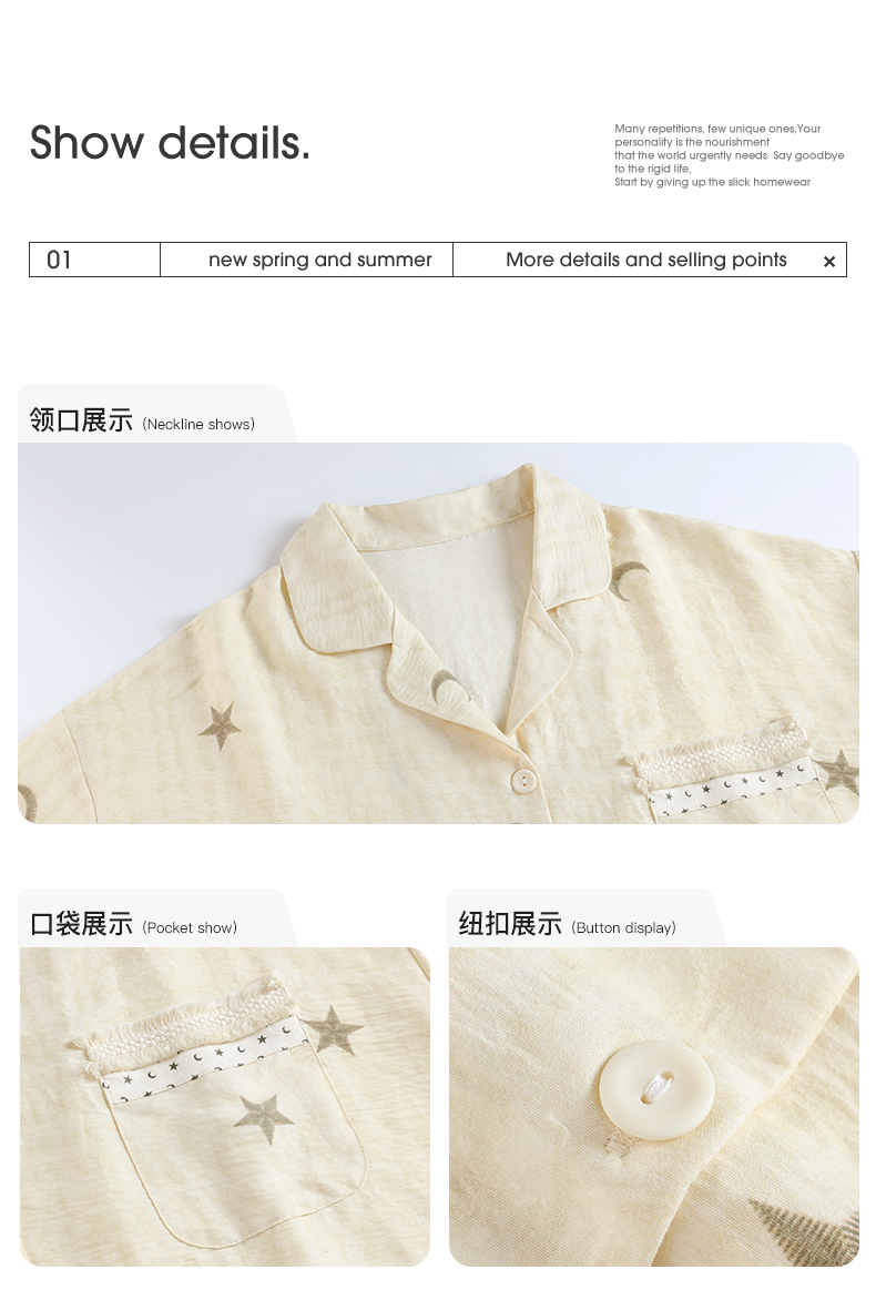 可人儿小众设计师新款奥力绵女士睡衣春夏短袖可外出家居服套装