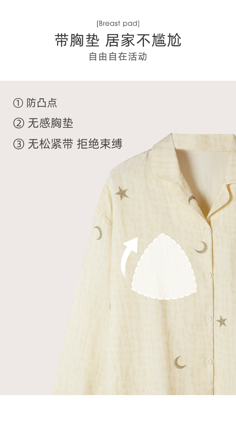 可人儿春秋季带胸垫泡泡绵女士长袖长裤睡衣可外出小众家居服套装